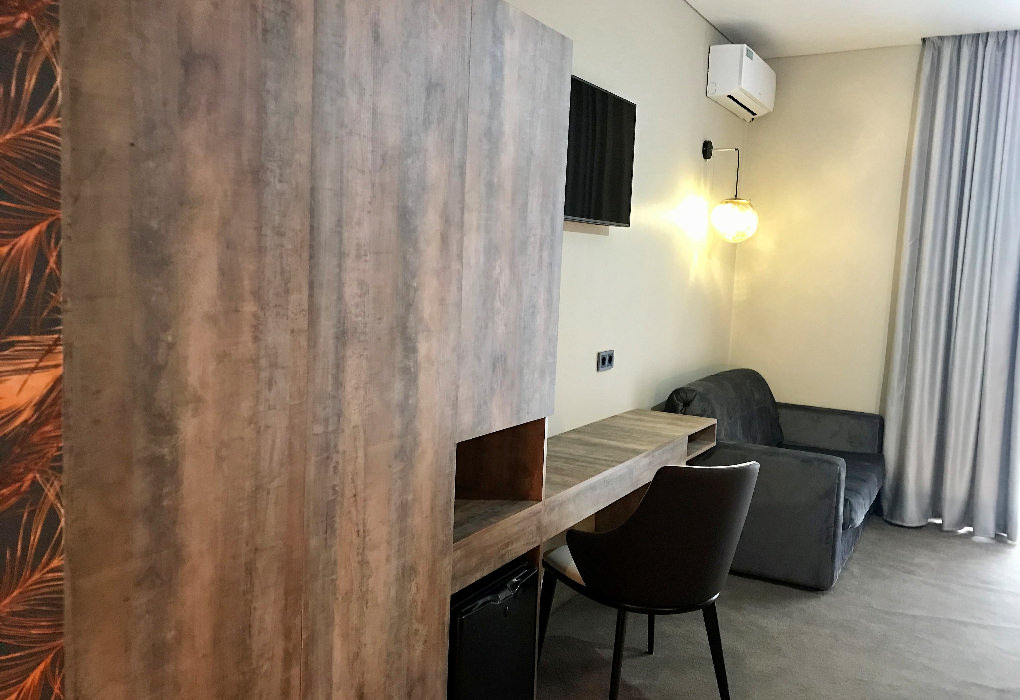 Площадь номера - 20 кв.м. 1 комната. 2 осн. места. 1-комнатный номер на 1-м этаже с террасой и видом на природный парк. В номере: телевизор; балкон; кондиционер; фен; мини-бар; тапочки; рабочий стол; туалетные принадлежности; 1-спальные/ 2-спальная кровать; диван; душевая кабина; шкаф; санузел; халат. 1 доп. место: