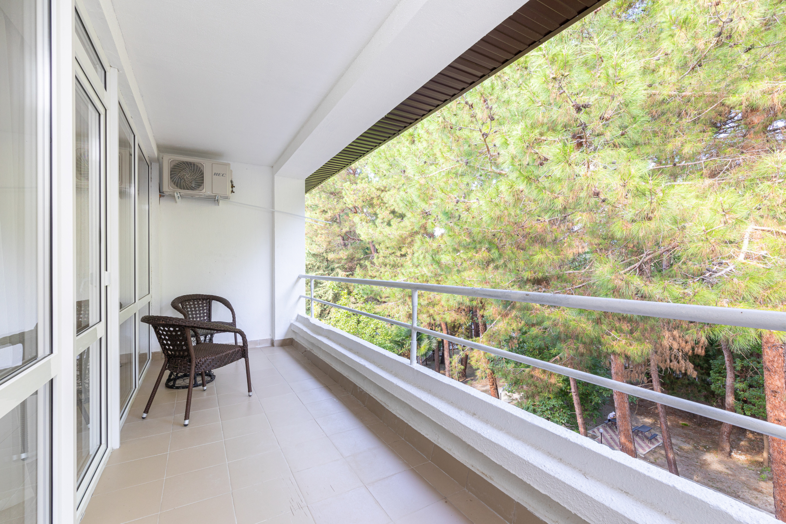 Площадь номера - 26 кв.м. 2 осн. места. 2 доп. места. Балкон. Мебель: вешалка, зеркало, кровать двуспальная, прикроватные тумбочки, стол, стулья, шкаф. Оборудование: кондиционер, телевизор, холодильник. Санузел: с душем, туалетные принадлежности, фен. Сервис: Wi-Fi бесплатно, смена полотенец, смена постельного белья, уборка номера.