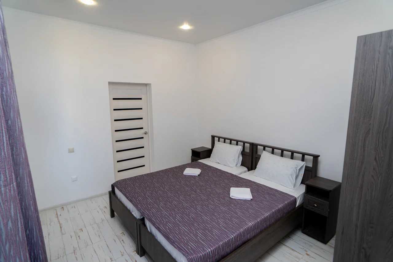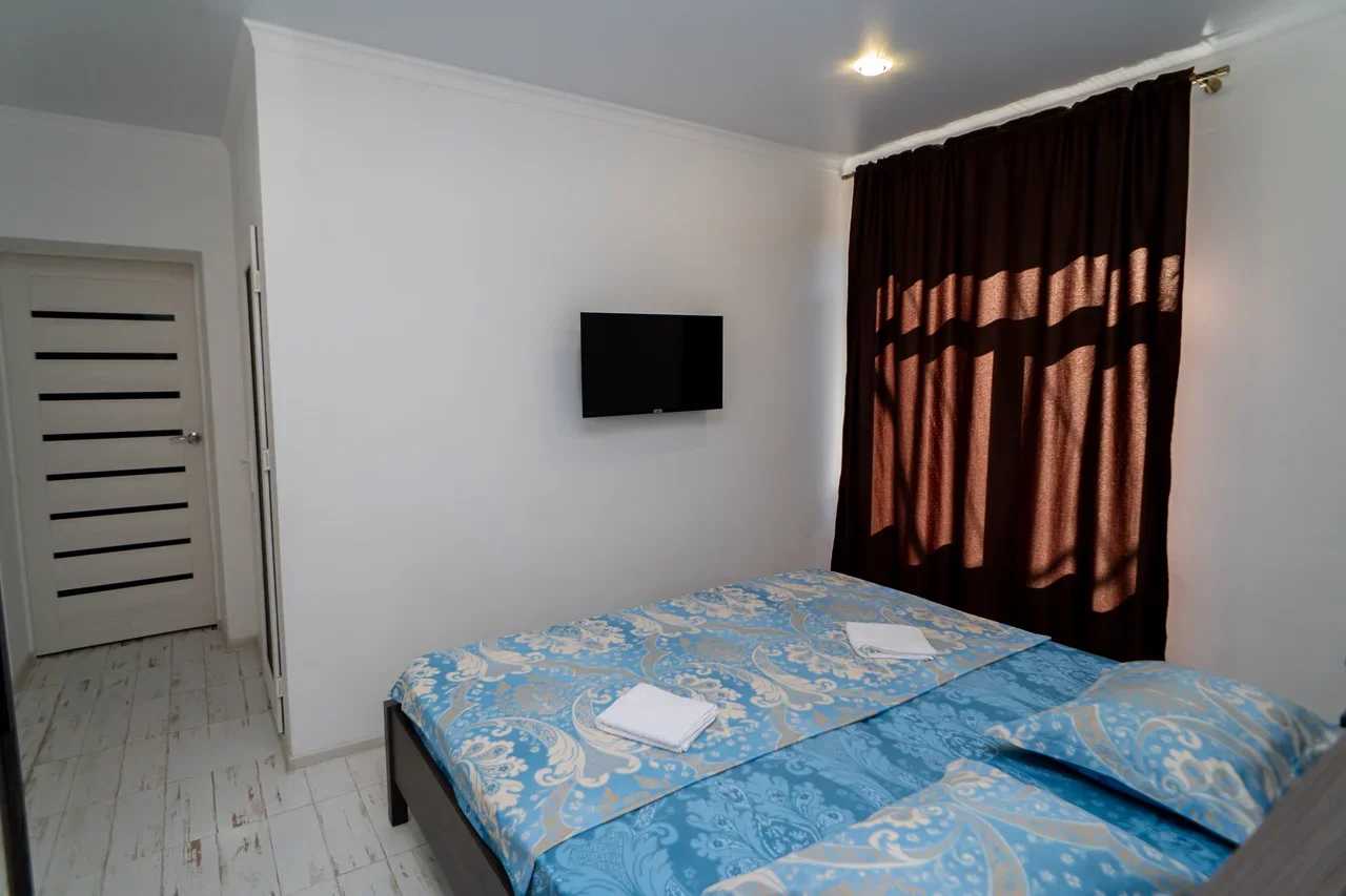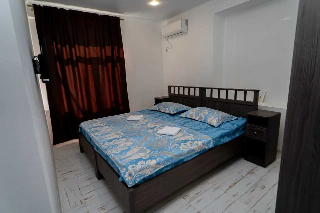 2 осн. места. 1 доп. место. Мебель: вешалка, зеркало, кровать двуспальная, прикроватные тумбочки, стол, стулья, шкаф. Оборудование: кондиционер, телевизор. Санузел: с душем, туалетные принадлежности, фен. Сервис: Wi-Fi бесплатно, смена полотенец, смена постельного белья, уборка номера.