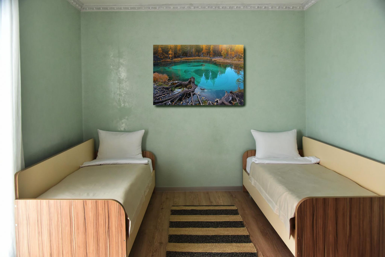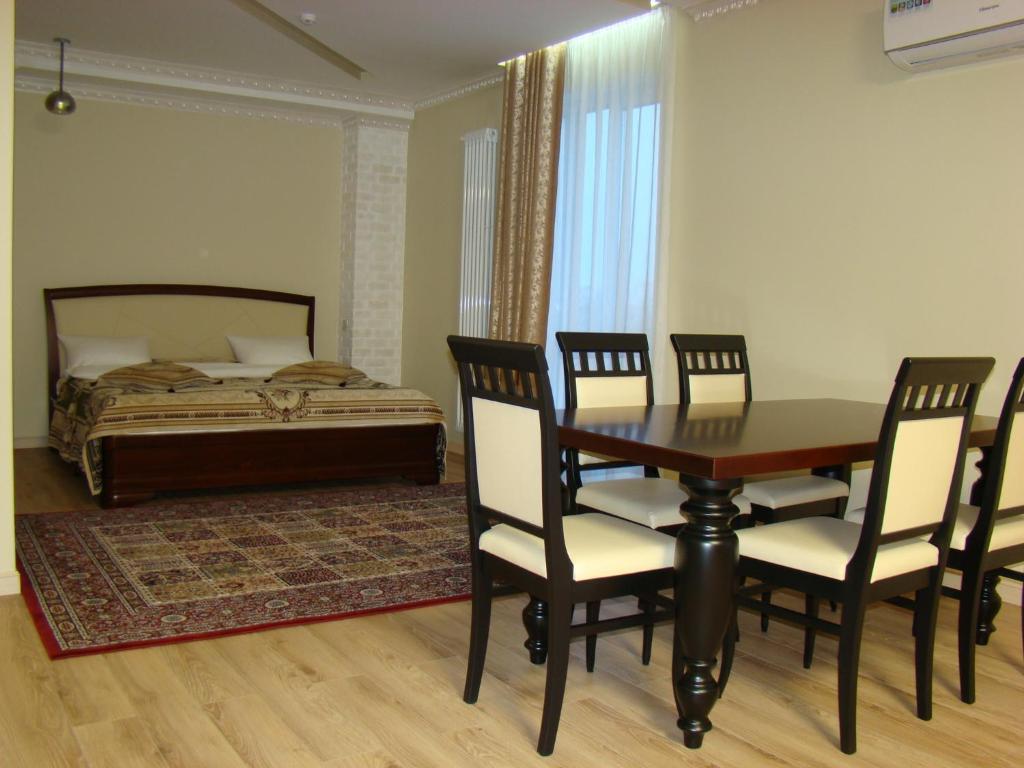 Номер оборудован в индивидуальном стиле для ценителей качества и комфорта. Дизайнерская мебель из качественных пород дерева создает атмосферу спокойствия и уюта. Две изолированных комнаты, холл, кухонная зона, душ и туалет. В большой комнате располагается двуспальная кровать, во второй есть два спальных места.
