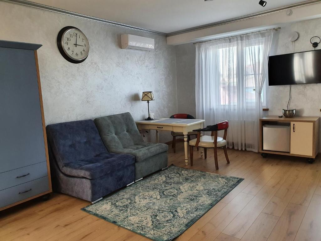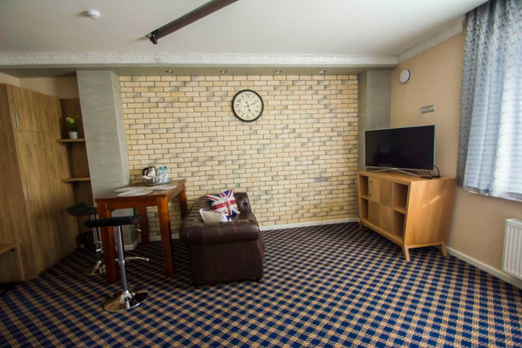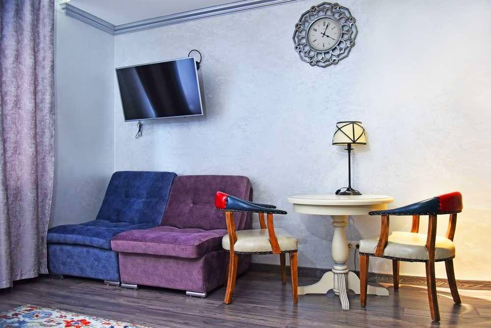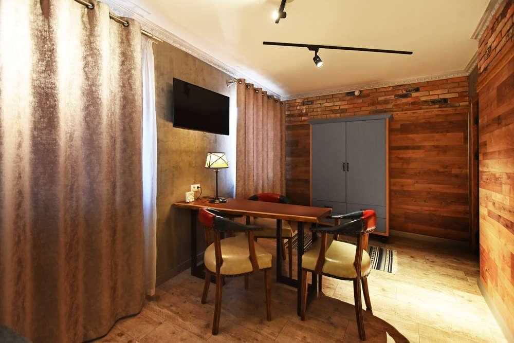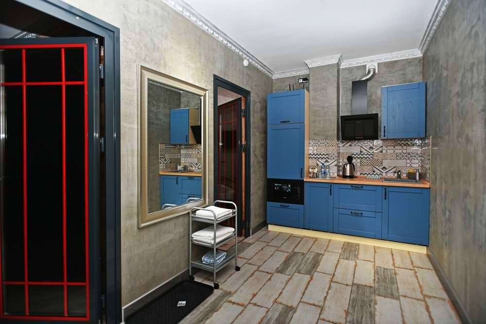 Апартаменты выполнены в индивидуальном стиле для ценителей качества и комфорта. Авторская мебель гармонично вписывается в дизайн и создает семейную атмосферу. В номере две просторных комнаты, кухня, душ и туалет. Гостиная с двуспальной кроватью и комната, где два раздельных спальных места.