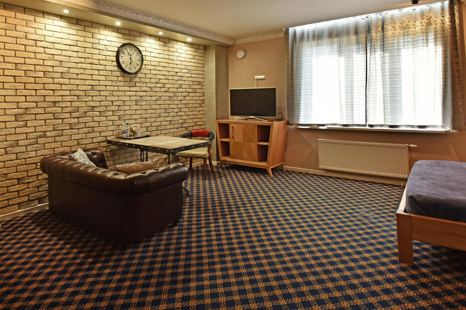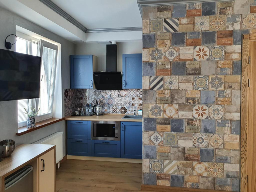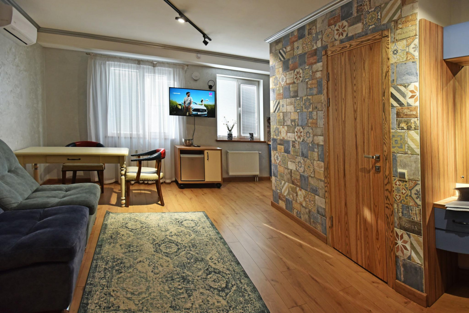 Апартаменты выполнены в индивидуальном стиле для ценителей качества и комфорта. Авторская мебель гармонично вписывается в дизайн и создает семейную атмосферу. В номере две просторных комнаты, кухня, душ и туалет. Гостиная с двуспальной кроватью и комната, где два раздельных спальных места.