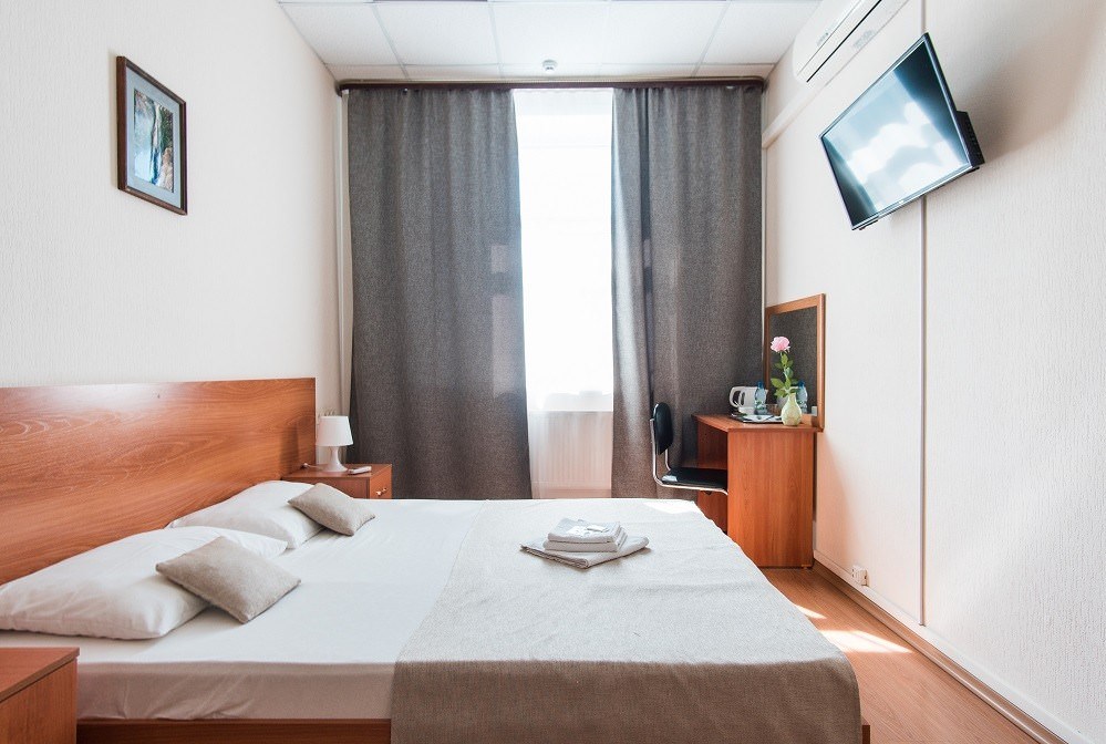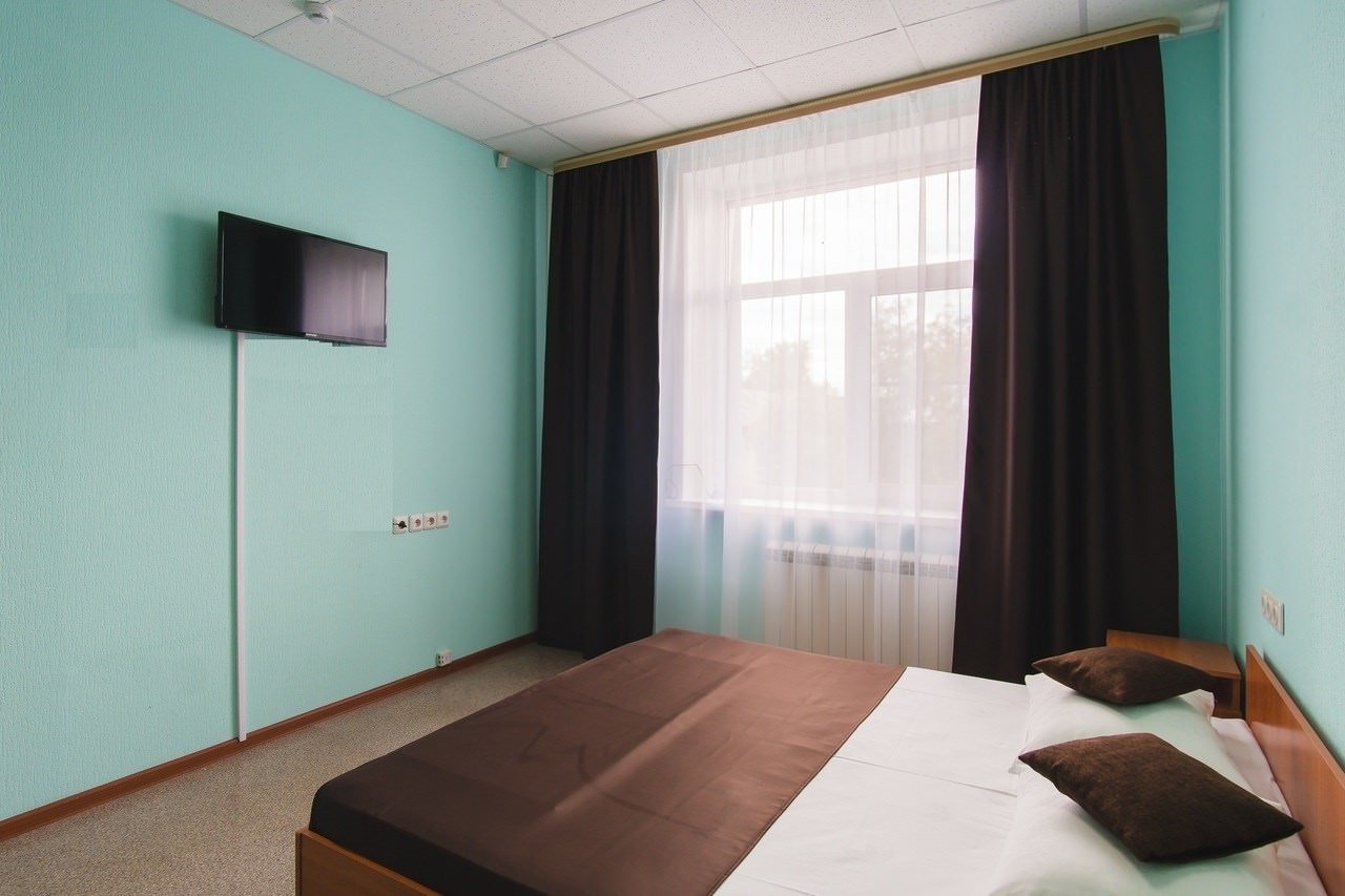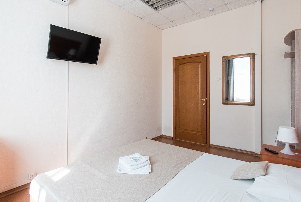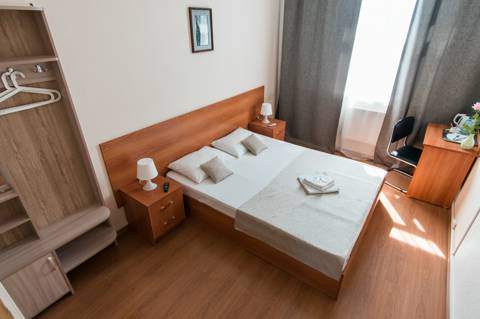 Бюджетный номер с 1 двухспальной кроватью. Номер выполнен в классическом стиле. В номере: Двухспальная кровать (160*2,00М2) Кондиционер Прикроватные тумбочки ЖК телевизор диагональю 81 см Вешалка для одежды Стол, 2 стула, настольные лампы. Бесплатный интернет Wi-Fi Комплект белья, 2 полотенец В ванной комнате: Санузел на этаже Фен по запросу Зеркало Гигиенические средства Дополнительно: Кулер на этаже Холодильник на этаже Микроволновая печь на этаже Разовые тапочки Посуда Столовые приборы Предметы гостеприимства