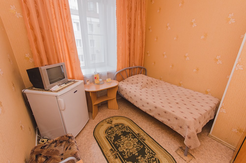 Недорогой одноместный номер категории "эконом"-это удобный вариант размещения в самом центре города по разумной цене. Туалет и душ на этаже.