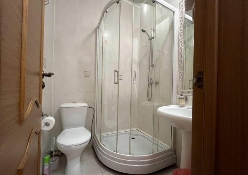 В номере: одна двуспальная кровать, шкаф, прикроватные тумбочки, светильники, кондиционер, ковровое покрытие, стол, стул, холодильник, телевизор, чайник, набор посуды фен. Санузел: душ, раковина, полотенцесушитель, WC.