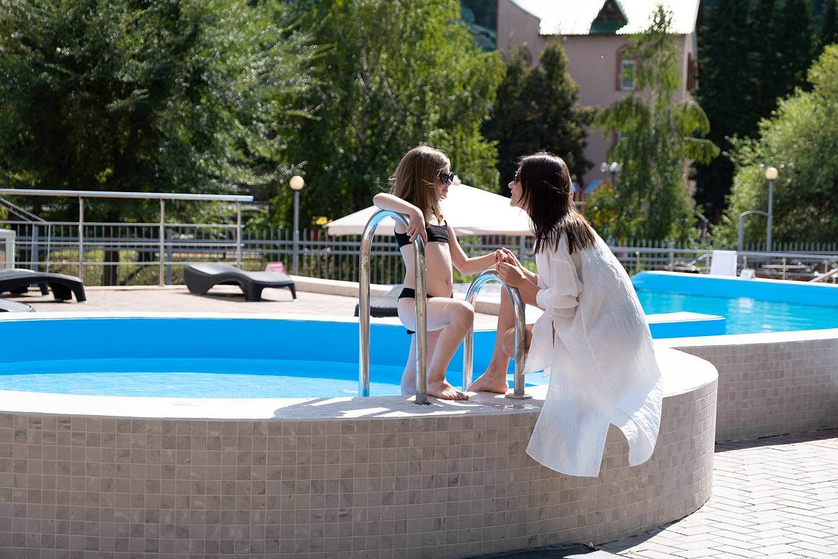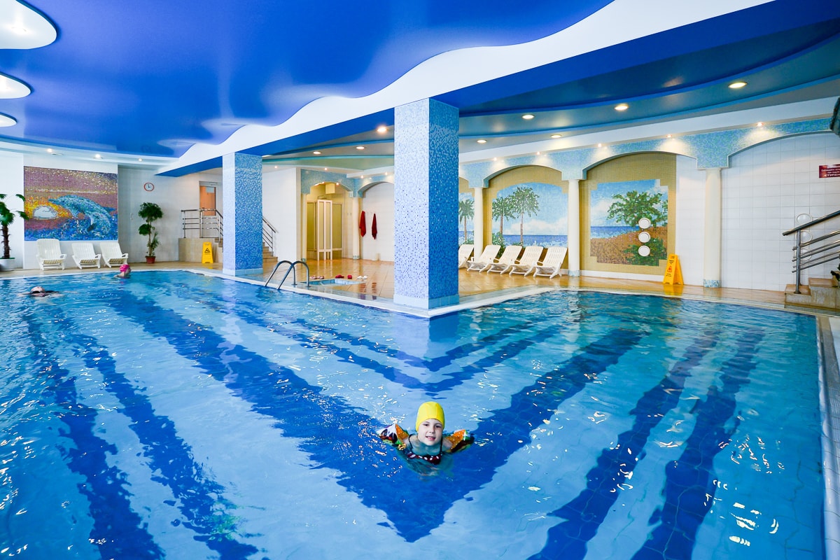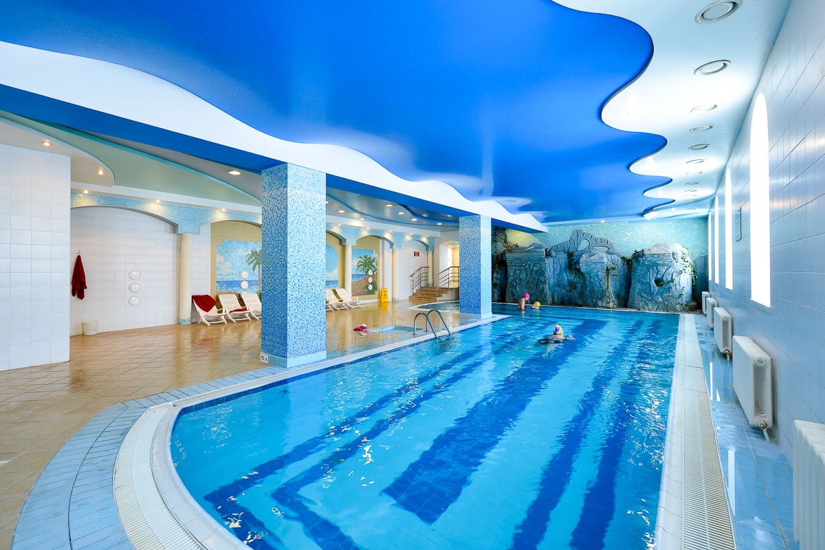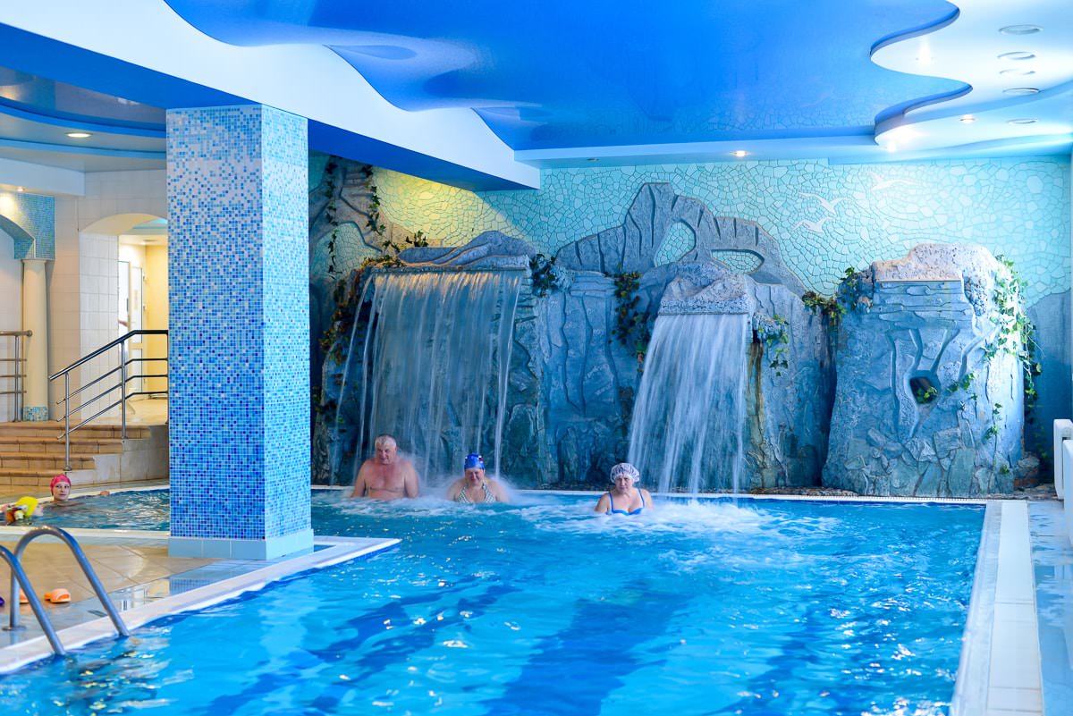 Инфраструктура санатория отличается аква термальным комплексом: это масштабный крытый бассейн длиной 12 метров, оборудованный гидромассажем и каскадным водопадом и открытый летний бассейн с подогревом. В бассейне предусмотрено детское отделение, а по периметру оборудована зона отдыха с лежаками и зонтиками. Также в санатории предусмотрен банный комплекс — две сауны и турецкий хаммам.