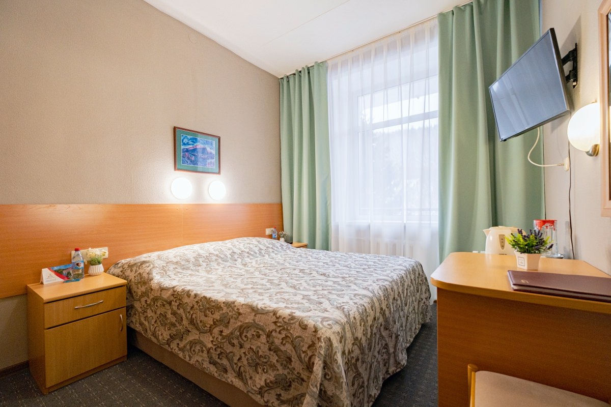 Номерной фонд соединен теплым переходом с рестораном и оздоровительным центром, оборудован лифтом. В современном здании 18 вариантов размещения, в том числе семейные номера с кухней и вариант с подселением. Номера после реновации и оснащены комфортной мебелью и современной техникой: кондиционер, телевизор, wi-fi, фен, холодильник и чайная станция.
