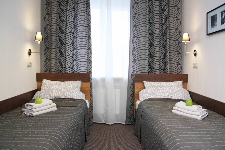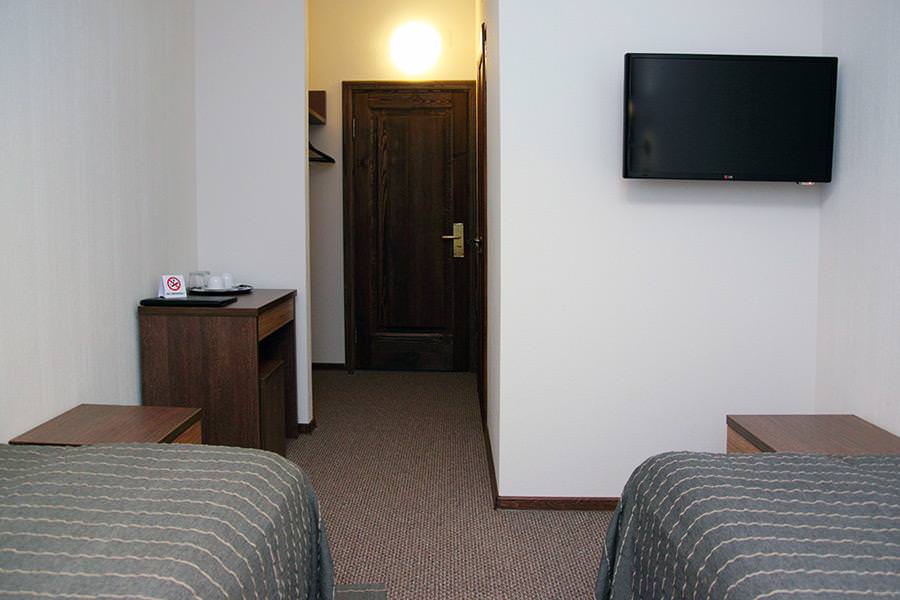 Однокомнатный номер - две односпальные кровати - прикроватные тумбы - телевизор (20 каналов) - бесплатный Wi-Fi - рабочая зона - набор посуды для чаепития - мини-бар (по прейскуранту) - сейф - санузел, душ (фен, туалетные принадлежности)