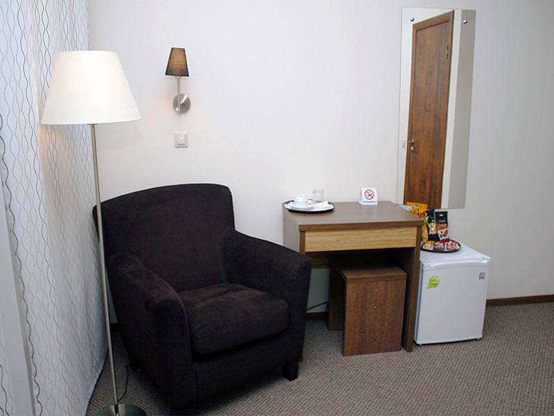 Однокомнатный номер - односпальная кровать - прикроватная тумбочка - телевизор (20 каналов) - бесплатный Wi-Fi - рабочая зона - набор посуды для чаепития - мини-бар (по прейскуранту) - сейф - санузел, душ (фен, туалетные принадлежности)