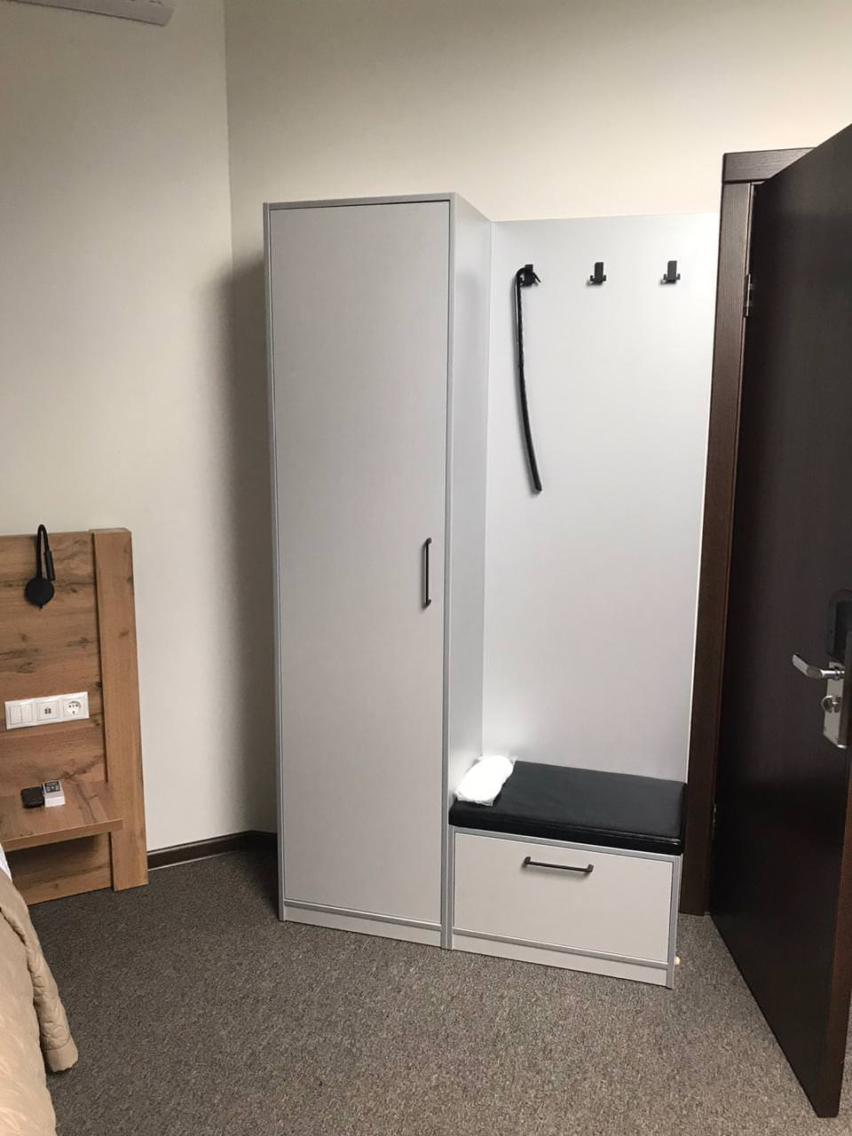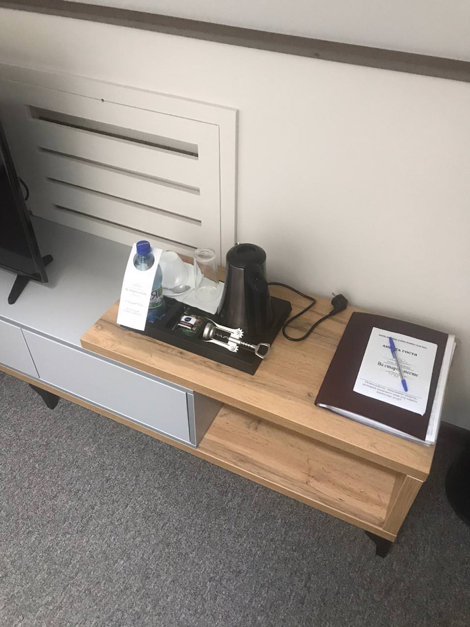 Номер повышенной комфортности - полутораспальная кровать - прикроватная тумбочка - Гардеробный шкаф - телевизор (20 каналов) - бесплатный Wi-Fi - набор посуды для чаепития - холодильник - кондиционер - мини-бар (по прейскуранту) - сейф - санузел, душ (фен, туалетные принадлежности, халат, тапочки)