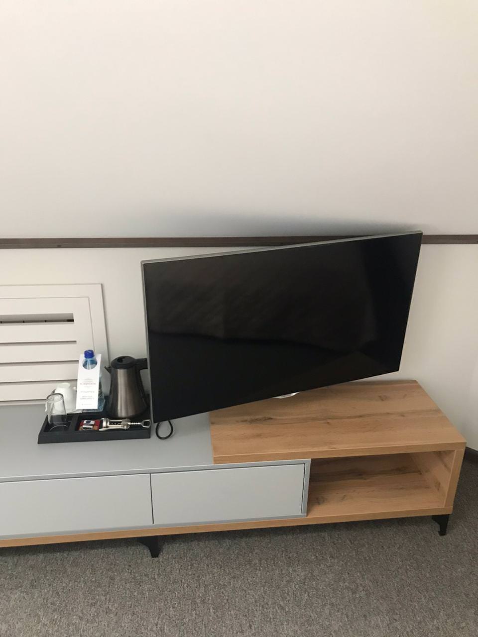 Номер повышенной комфортности - двуспальная кровать - гардеробная - мягкая зона (диван) - кухонная зона -обеденный стол - 3 телевизора (20 каналов) - бесплатный Wi-Fi - рабочая зона - набор посуды для чаепития - холодильник - кондиционер - мини-бар (по прейскуранту) - сейф - санузел: биде, ванна, душ (фен, туалетные принадлежности, халат, тапочки) -2 балкона