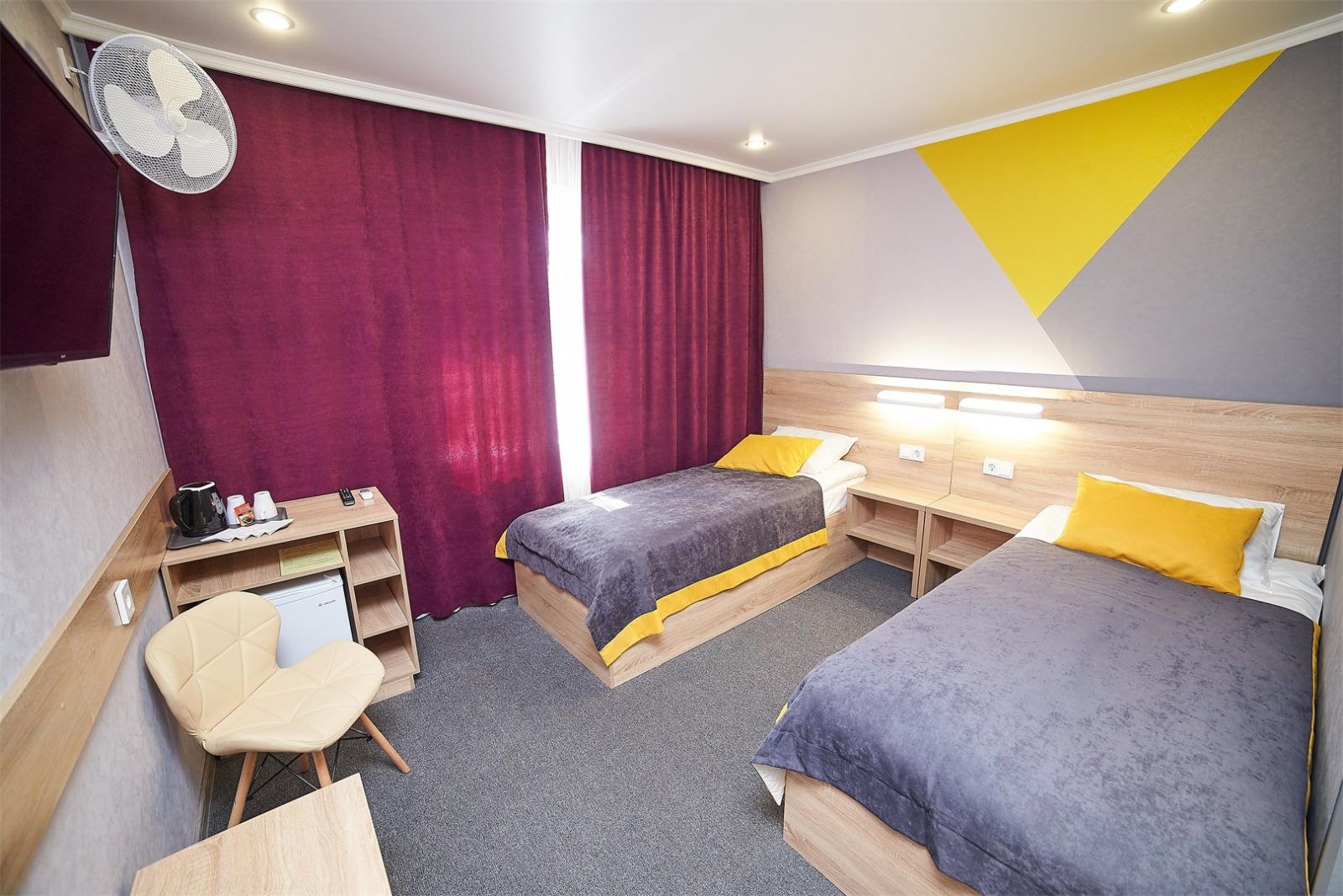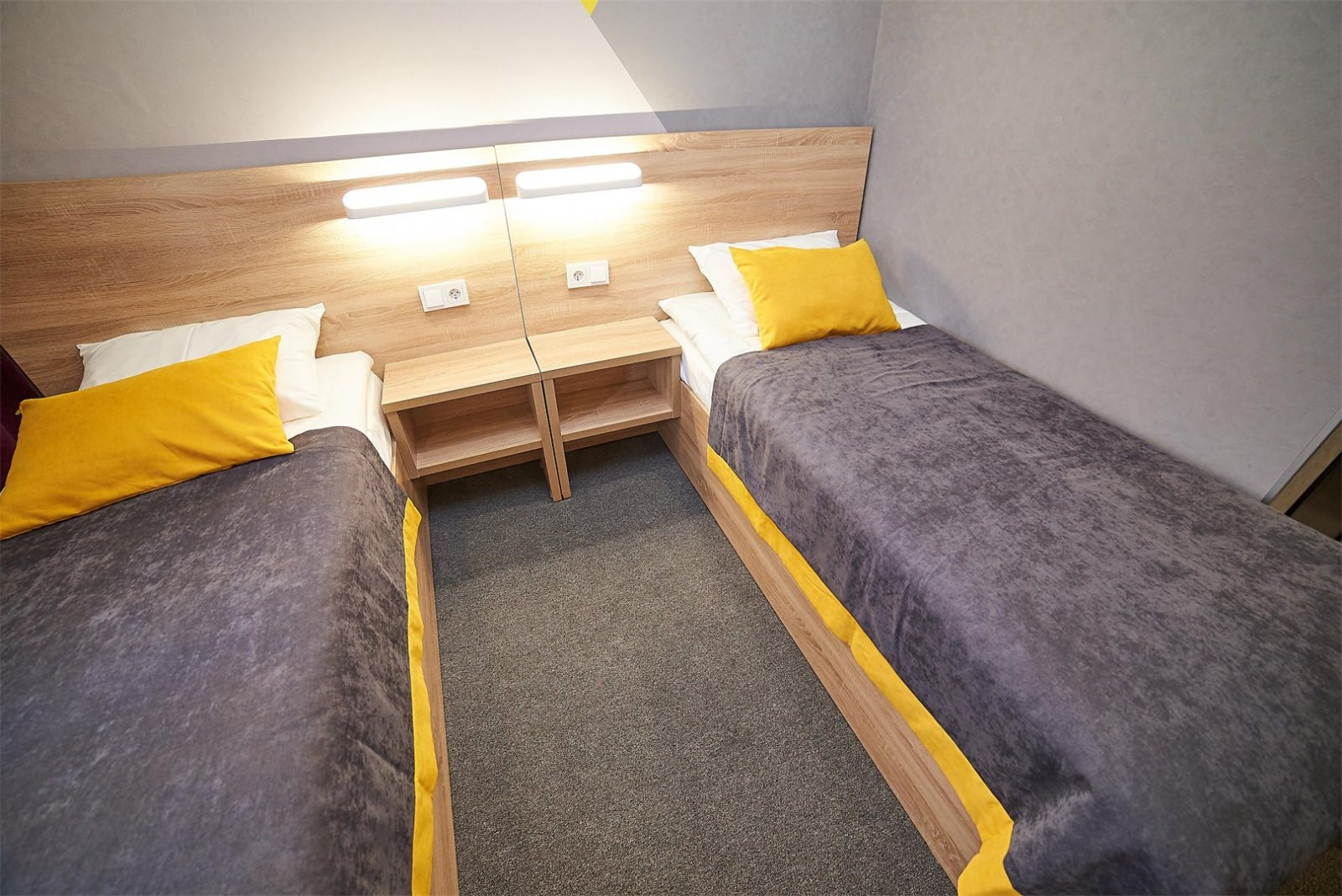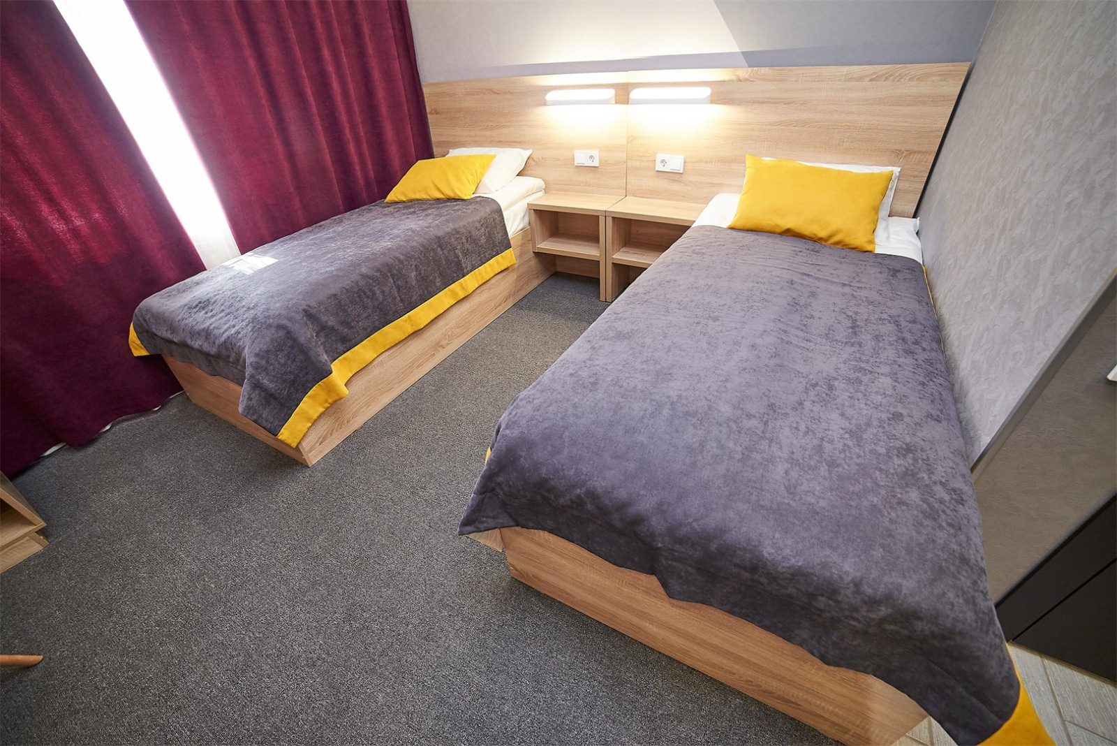 Номер Бизнес 05 - современный номер отеля "Луна". Две односпальные кровати, буфет, душ, сытный завтрак и многое другое.