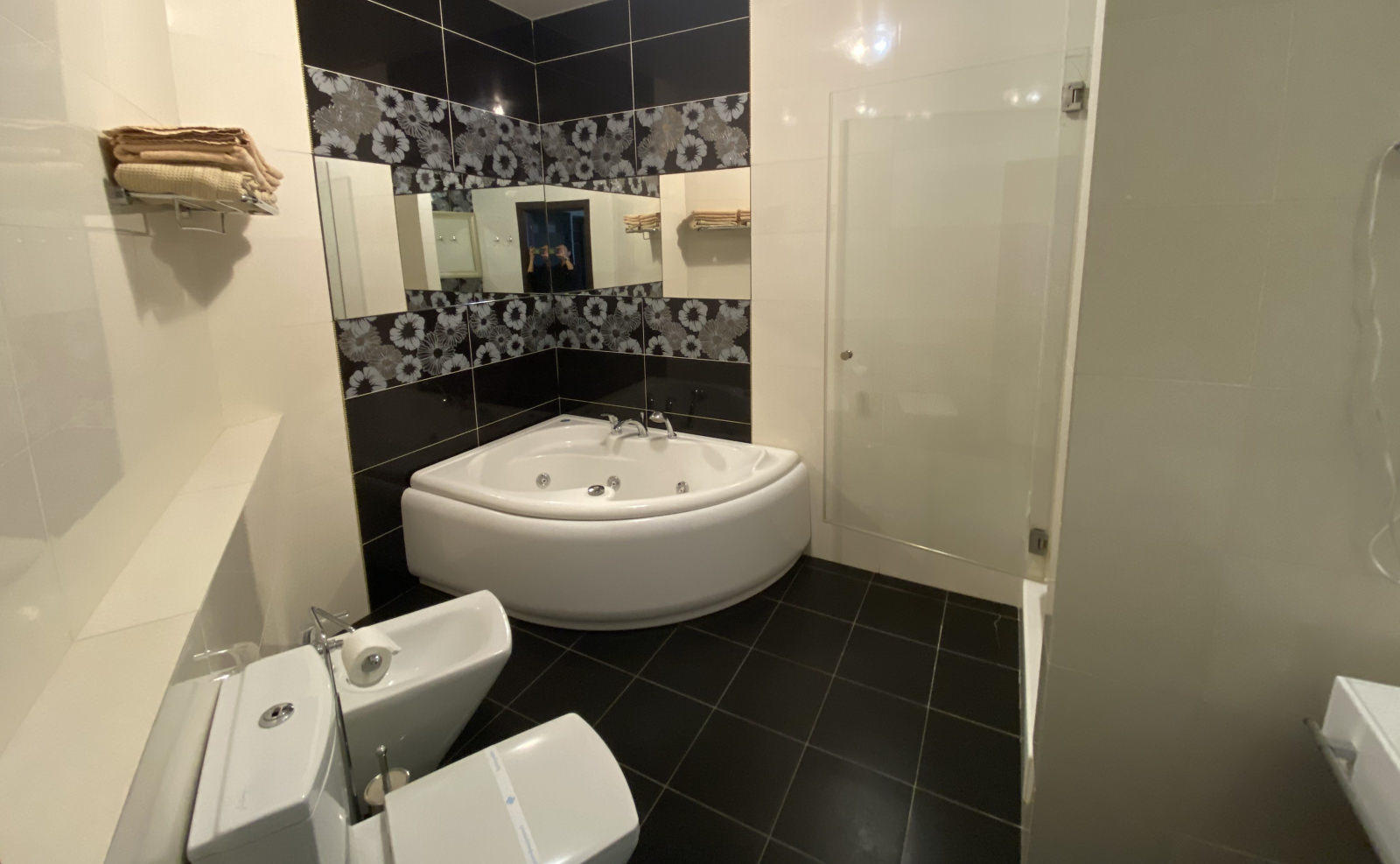 Площадь номера - 59-90 кв.м. 1 осн. место. 3 доп. места. Мебель: кровать двуспальная, набор мягкой мебели, стол, стулья, шкаф. Оборудование: кондиционер, мини-холодильник, сейф, телевизор, телефон. Санузел: с джакузи, с душем, фен. Сервис: Wi-Fi бесплатно, room-сервис, смена полотенец, смена постельного белья, уборка номера.