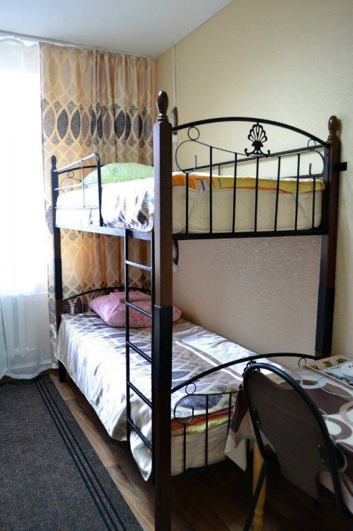 Номер с 2 двухъярусными кроватями, удобства (санузел и душ) вне номера.