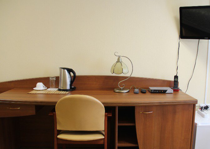 Комфортабельный номер площадью 15 кв.м. В номере: кровать размером 1,5 * 2,0 м., гардероб, письменный стол, мини-холодильник, телефон, чайник, посуда, ЖК телевизор со спутниковым телевидением, ванная комната с душевой кабиной, индивидуальные туалетные принадлежности, халат, тапочки.
