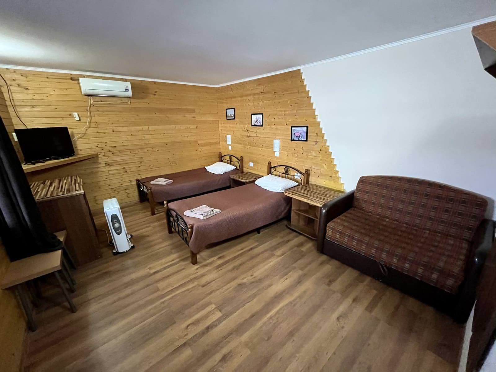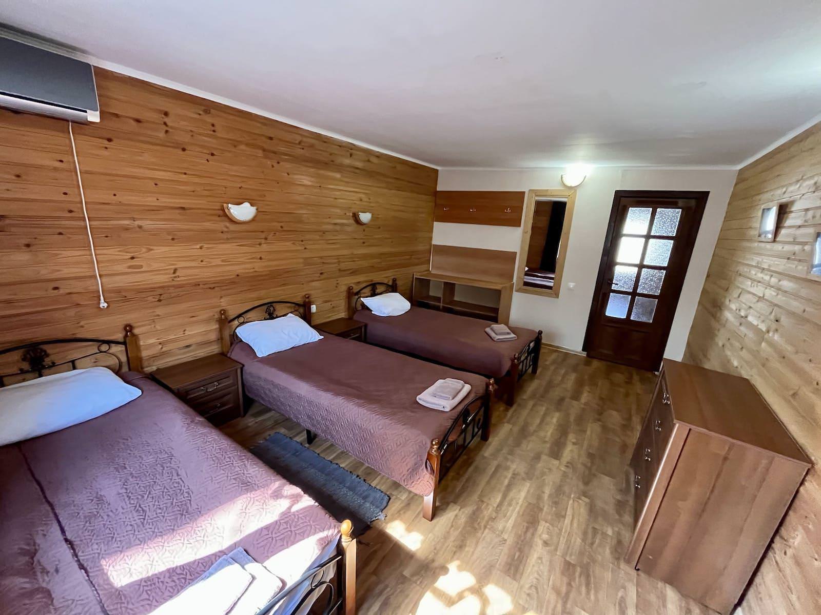 Трехместный номер стандарт с 3 односпальными кроватями. В номере: телевизор, кондиционер, место для хранения одежды, санузел с душевой, холодильник, чайник и посуда.