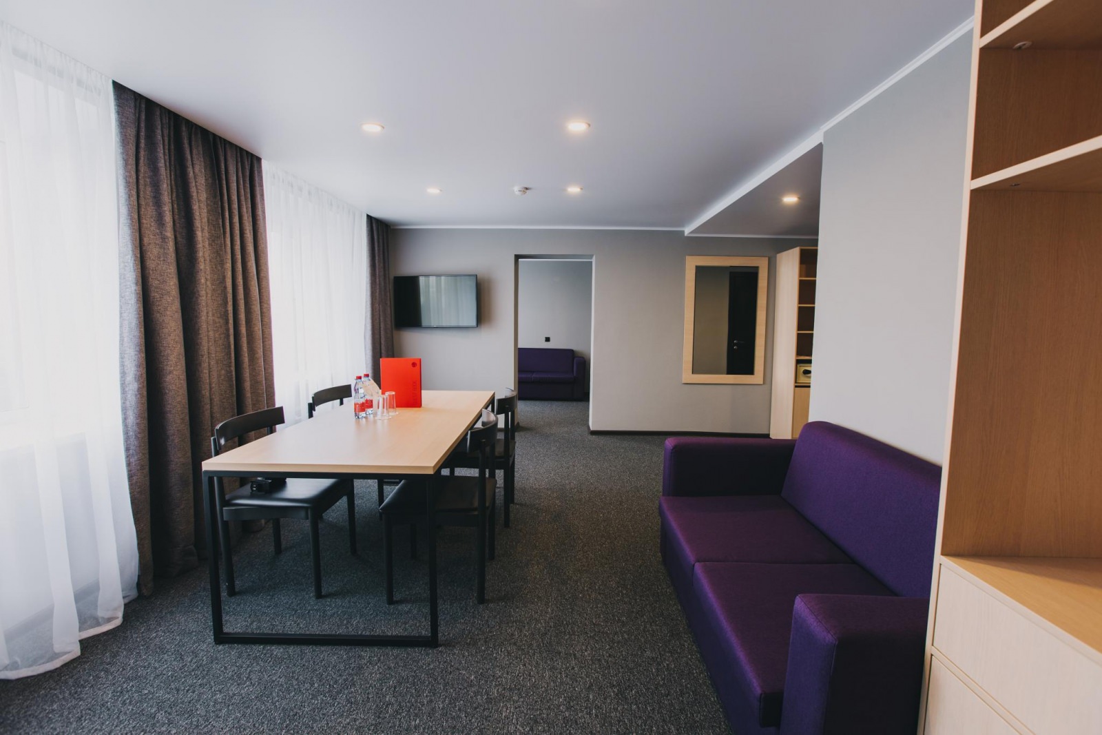 Современные двухкомнатные номера премиального класса площадью 40 кв.м. Стильный дизайн, выдержанный в нейтральных тонах, здесь сочетается с функциональным подходом к организации пространства номера.
