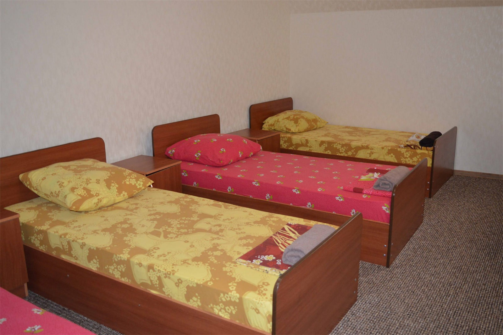 Номер категории "Стандарт трехместный" рассчитан на проживание 3-х человек. Номер со всеми удобствами - телевизор, телефон, сплит-система, холодильник. Санузел и ванная комната в номере.