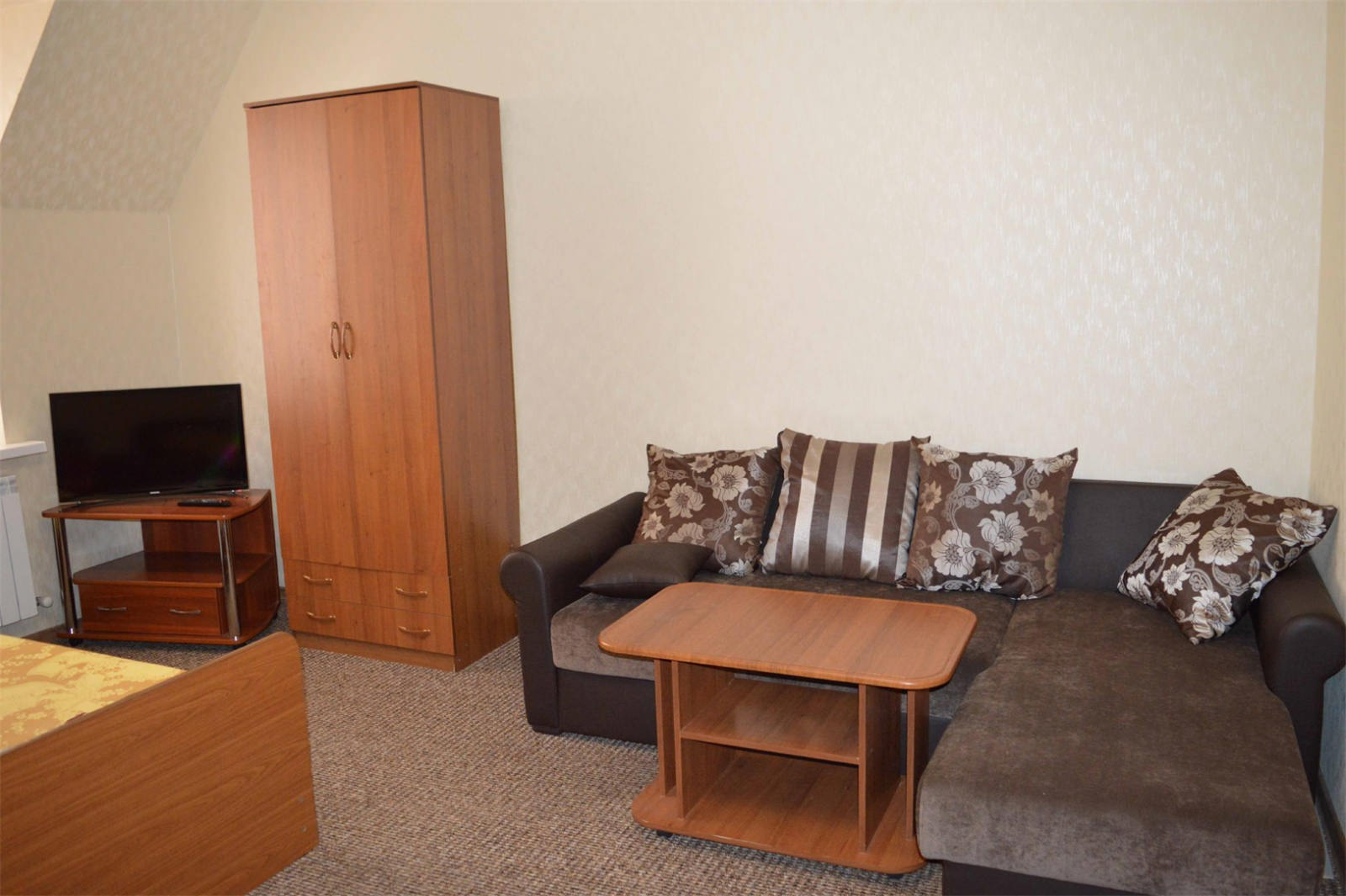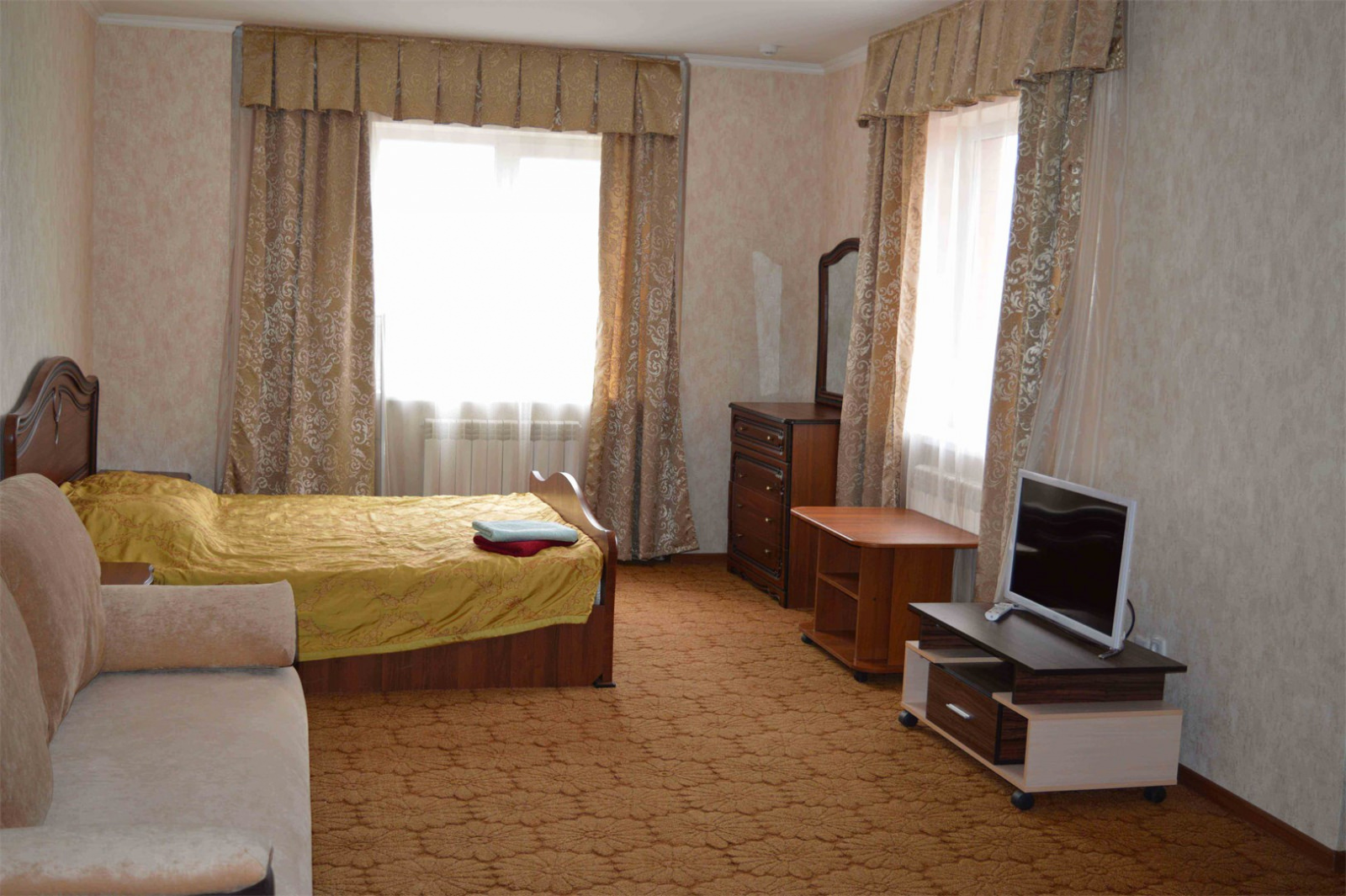 Вы хотите максимально комфортного размещения, и стандартные номера Вам не подходят? Тогда к Вашим услугам номера категории «Люкс». Кроме того, номер "Люкс" в нашей гостинице – отличное решение для молодожёнов, решивших провести первую брачную ночь в шикарном номере, утопающем в атмосфере романтики. Оформление номера выполнено в спокойных теплых тонах. В данной категории номера - предоставляются бесплатные завтраки на 2 персоны.