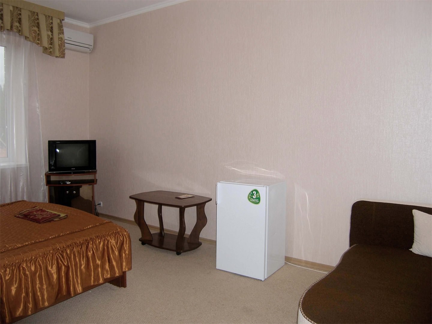 Номер категории "Стандарт пятиместный" рассчитан на проживание пяти человек. Номер со всеми удобствами - телевизор, телефон, сплит-система, холодильник. Санузел и ванная комната в номере