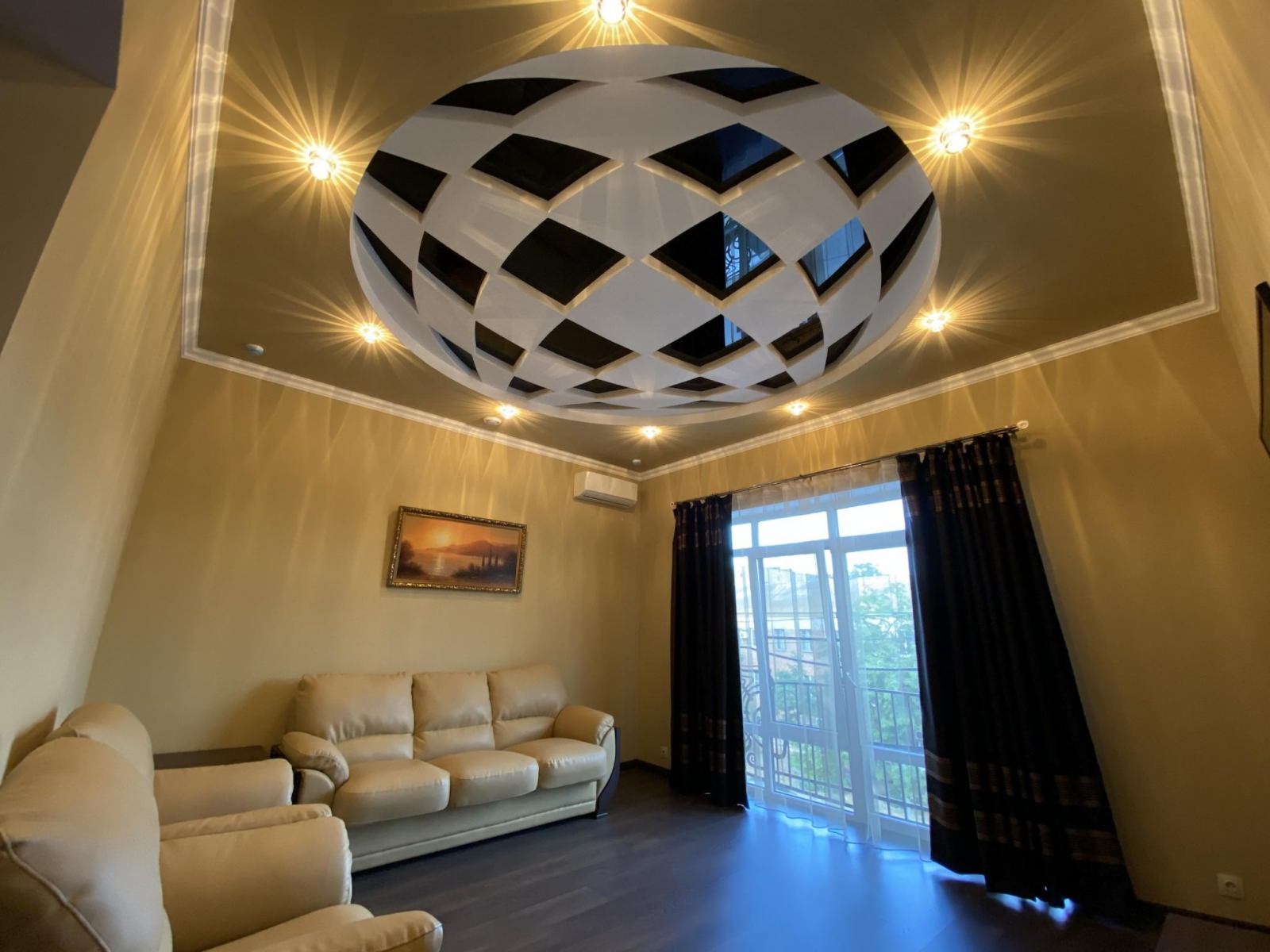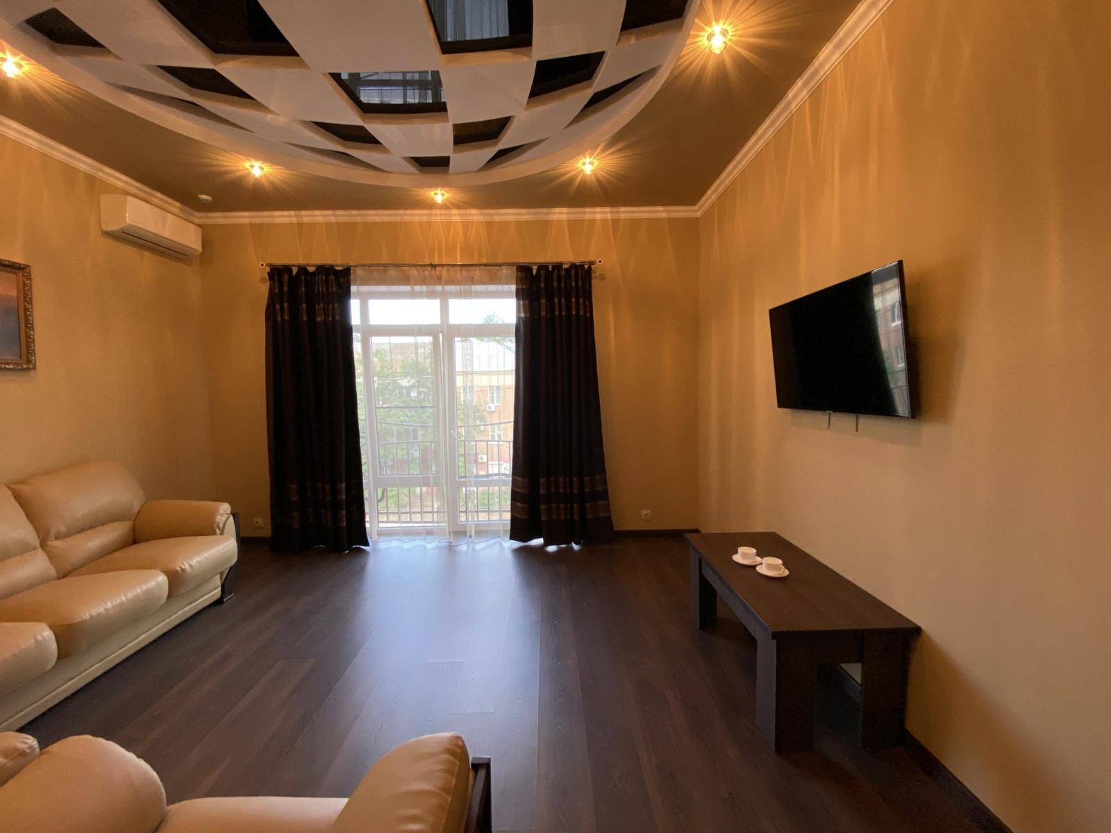 В комфортабельном номере: 1 двуспальная кровать, ортопедический матрас, прикроватные тумбы, встроенный шкаф, кондиционер, холодильник, чайная пара, электрический чайник, посуда, мини-бар, телевизор, диван, журнальный столик, круглый столик, стулья. В ванной комнате: душевая кабина, раковина, унитаз, фен, полотенца, тапочки, средства личной гигиены.