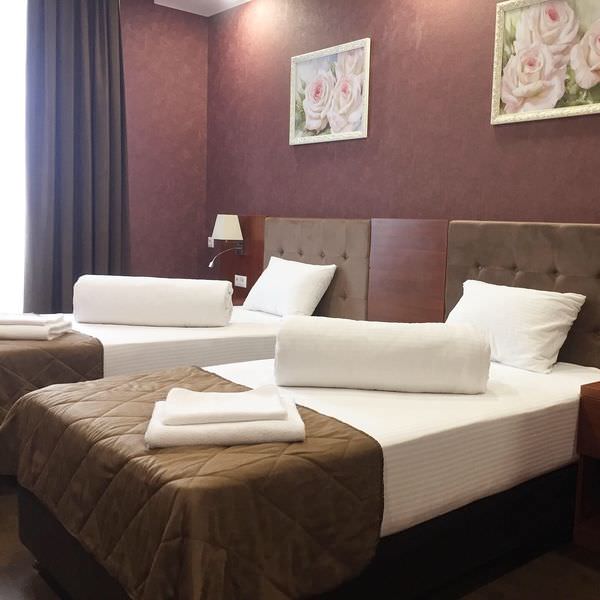Площадь номера - 30 кв.м.; В номере: Кондиционер, Холодильник, Телевизор, Тапочки, Халат, Фен, Набор косметики (туалетные принадлежности), Двуспальная кровать, Туалет в номере, Односпальная кровать , Шкаф, Чайник, Набор посуды; Макс. кол-во гостей - 3