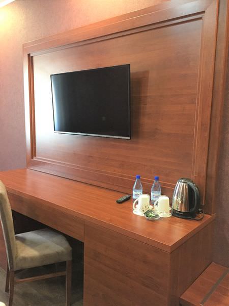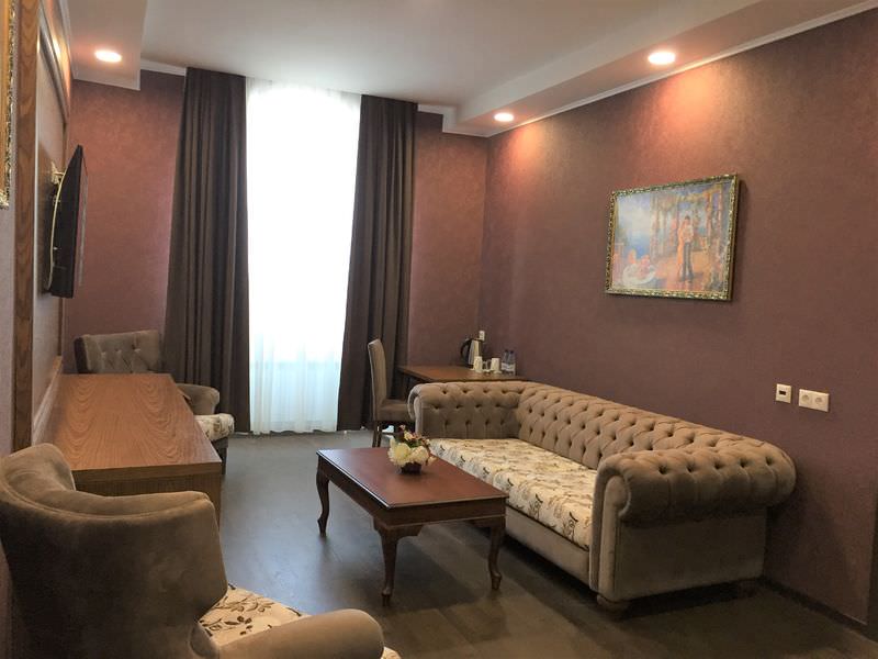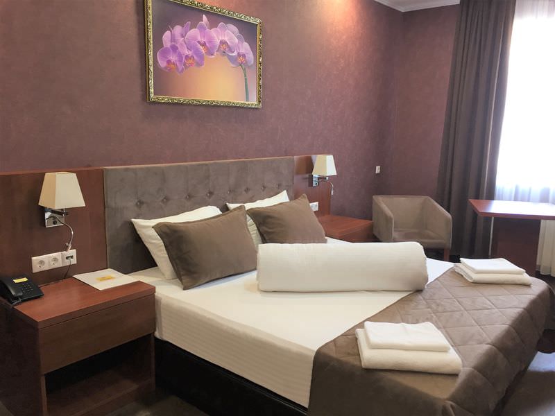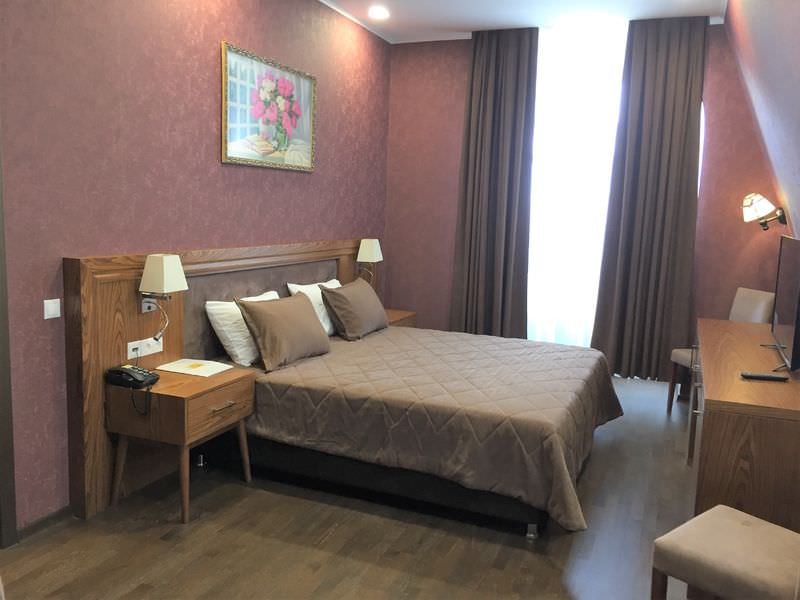 Площадь номера - 30 кв.м.; В номере: Кондиционер, Сейф, Холодильник, Телевизор, Телефон, Тапочки, Халат, Услуга будильник, Фен, Набор косметики (туалетные принадлежности), Набор для приготовления чая/кофе, Ванна, Двуспальная кровать, Туалет в номере, Тумбочка, Шкаф, Чайник, Утюг, Гладильная доска, Сплит-система ; Макс. кол-во гостей - 2