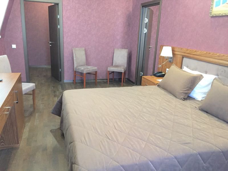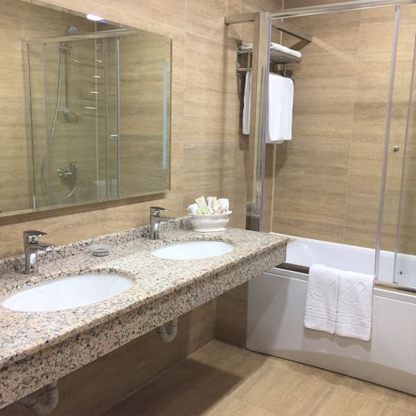 Площадь номера - 54 кв.м.; В номере: Кондиционер, Сейф, Холодильник, Телевизор, Телефон, Кабельное/спутниковое/цифровое телевидение, Тапочки, Халат, Услуга будильник, Фен, Набор косметики (туалетные принадлежности), Набор для приготовления чая/кофе, Рабочая зона, Ванна, Двуспальная кровать, Туалет в номере, Тумбочка, Шкаф, Чайник, Утюг, Сплит-система ; Макс. кол-во гостей - 2
