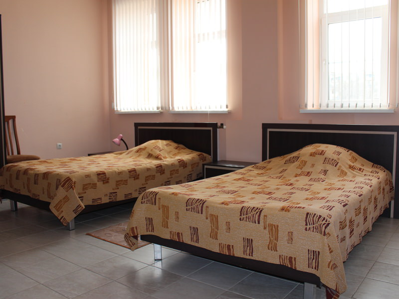 Площадь номера - 16 кв.м. 2 осн. места. 1 доп. место. Мебель: вешалка, диван, зеркало, кровати односпальные, прикроватные тумбочки, стол, столик журнальный, столик туалетный, стулья, тумба под телевизор, шкаф встроенный. Оборудование: набор посуды, сплит-система, телевизор, холодильник, чайный набор посуды. Санузел: с душем (поддон), туалетные принадлежности. Сервис: Wi-Fi бесплатно, смена полотенец, смена постельного белья, уборка номера.