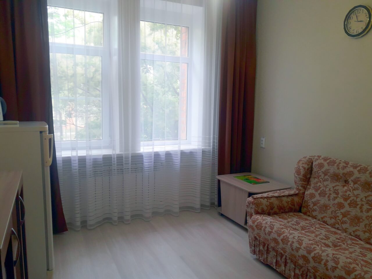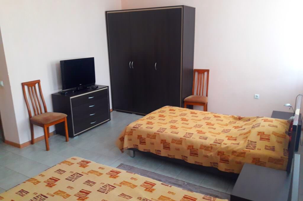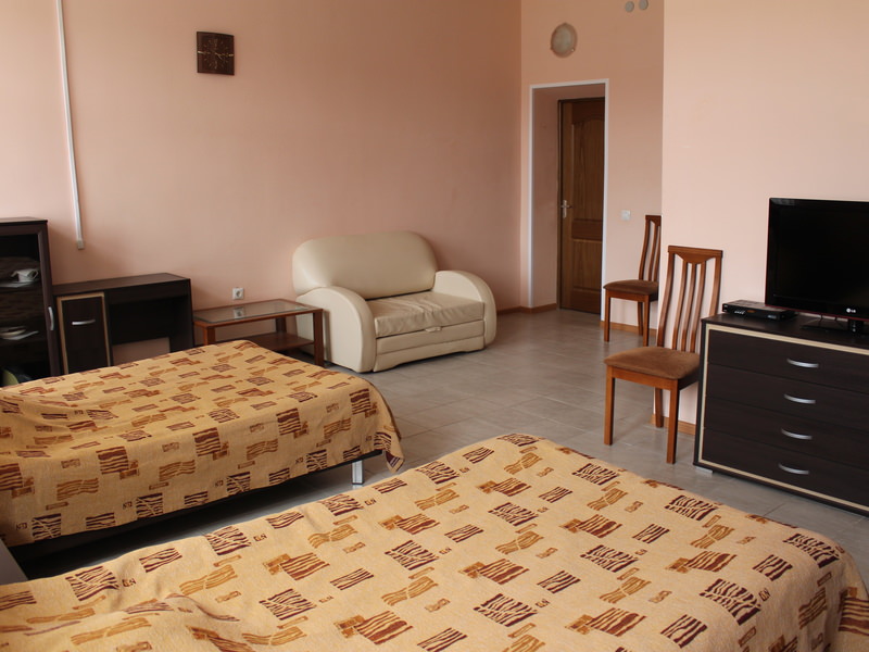 Площадь номера - 28 кв.м. 2 осн. места. 1 доп. место. Мебель: вешалка, диван, комод, кровати полутороспальные, прикроватные тумбочки, столик журнальный, столик туалетный, стул, шкаф-купе. Оборудование: набор посуды, сплит-система, телевизор ЖК, холодильник, чайный набор посуды. Санузел: с душем (поддон), туалетные принадлежности. Сервис: Wi-Fi бесплатно, смена полотенец, смена постельного белья, уборка номера.