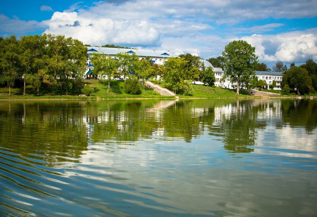Поездом до ж/д вокзала г. Молодечно, далее на личном транспорте или такси.