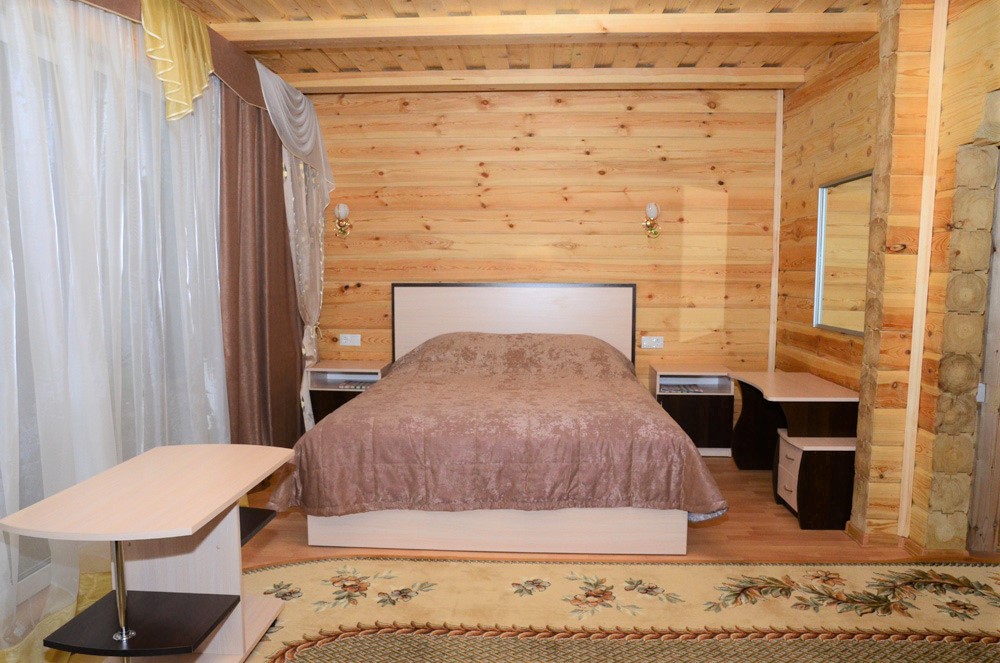 Площадь номера - 27 кв.м. 2 осн. места. 1 доп. место. Мебель: вешалка, диван, зеркало, кровать двуспальная, прикроватные тумбочки, стол, столик туалетный, стулья, шкаф. Мини-кухня. Оборудование: индивидуальная система обогрева, микроволновая печь, набор посуды, телевизор ЖК, холодильник, электрочайник. Санузел: с душевой кабиной, туалетные принадлежности, фен. Сервис: Wi-Fi бесплатно, смена полотенец (1 раз в неделю), смена постельного белья (1 раз в неделю), уборка номера (ежедневно). Терраса.