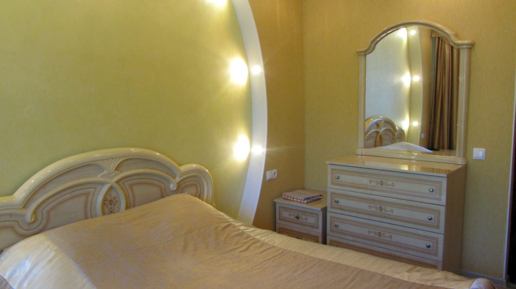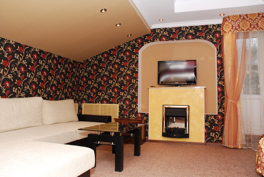 2 осн. места. 1 доп. место. Мебель: вешалка, диван, зеркало, кровать двуспальная, прикроватные тумбочки, стол, стулья, шкаф. Оборудование: кондиционер, телевизор, чайный набор посуды, электрочайник. Санузел: с джакузи, туалетные принадлежности, фен. Сервис: Wi-Fi бесплатно, смена полотенец, смена постельного белья, уборка номера.
