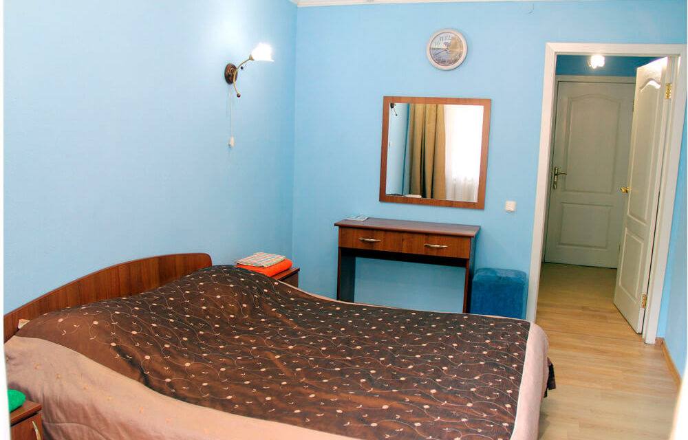 Площадь номера - 16 кв.м. 1 осн. место. 1 доп. место. Балкон. Мебель: зеркало, кровать двуспальная, прикроватные тумбочки, стол, стул, шкаф. Оборудование: мини-холодильник, набор посуды, телевизор, электрочайник. Санузел: с душем, туалетные принадлежности, фен. Сервис: Wi-Fi бесплатно, смена полотенец (по требованию), смена постельного белья (1 раз в неделю), уборка номера (ежедневно).