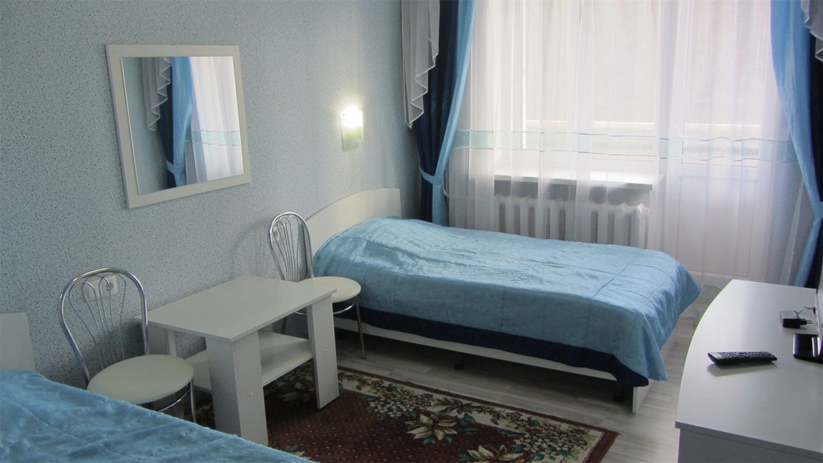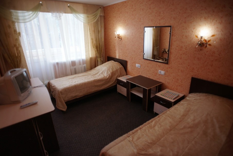Площадь номера - 16 кв.м. 2 осн. места. 1 доп. место. Балкон. Мебель: вешалка, зеркало, кровати односпальные, прикроватные тумбочки, стол, стулья, шкаф. Оборудование: мини-холодильник, набор посуды, телевизор, электрочайник. Санузел: с душем, туалетные принадлежности. Сервис: Wi-Fi бесплатно, смена полотенец (по требованию), смена постельного белья (1 раз в неделю), уборка номера (ежедневно).