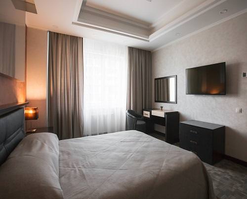 Просторный двухкомнатный номер. Комфортная двухспальная кровать, мягкая мебель, журнальный столик, шкаф-купе, 2 Ж.К. телевизора, кондиционер, сейф, просторный санузел оборудован беде, ванной или душевой кабиной, фен. халаты. тапочки, средства личной гигиены.