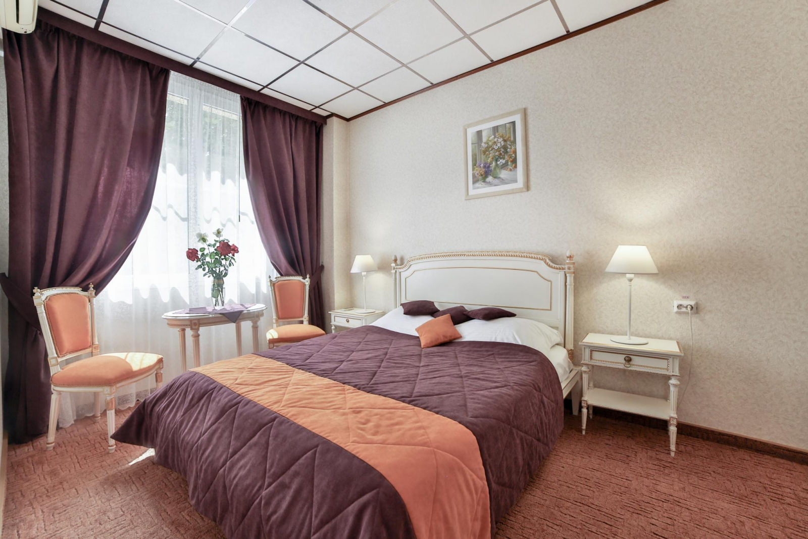 Стандарт с одной комнатой и одной двуспальной кроватью. Номер оснащен кабельным телевидением, мини-холодильником, электрочайником, кондиционером, Wi-Fi доступом в Интернет. В ванной комнате халат, тапочки, фен, одноразовая косметическая продукция(мыло, шампунь, гель для душа, бритвенный и зубной наборы).