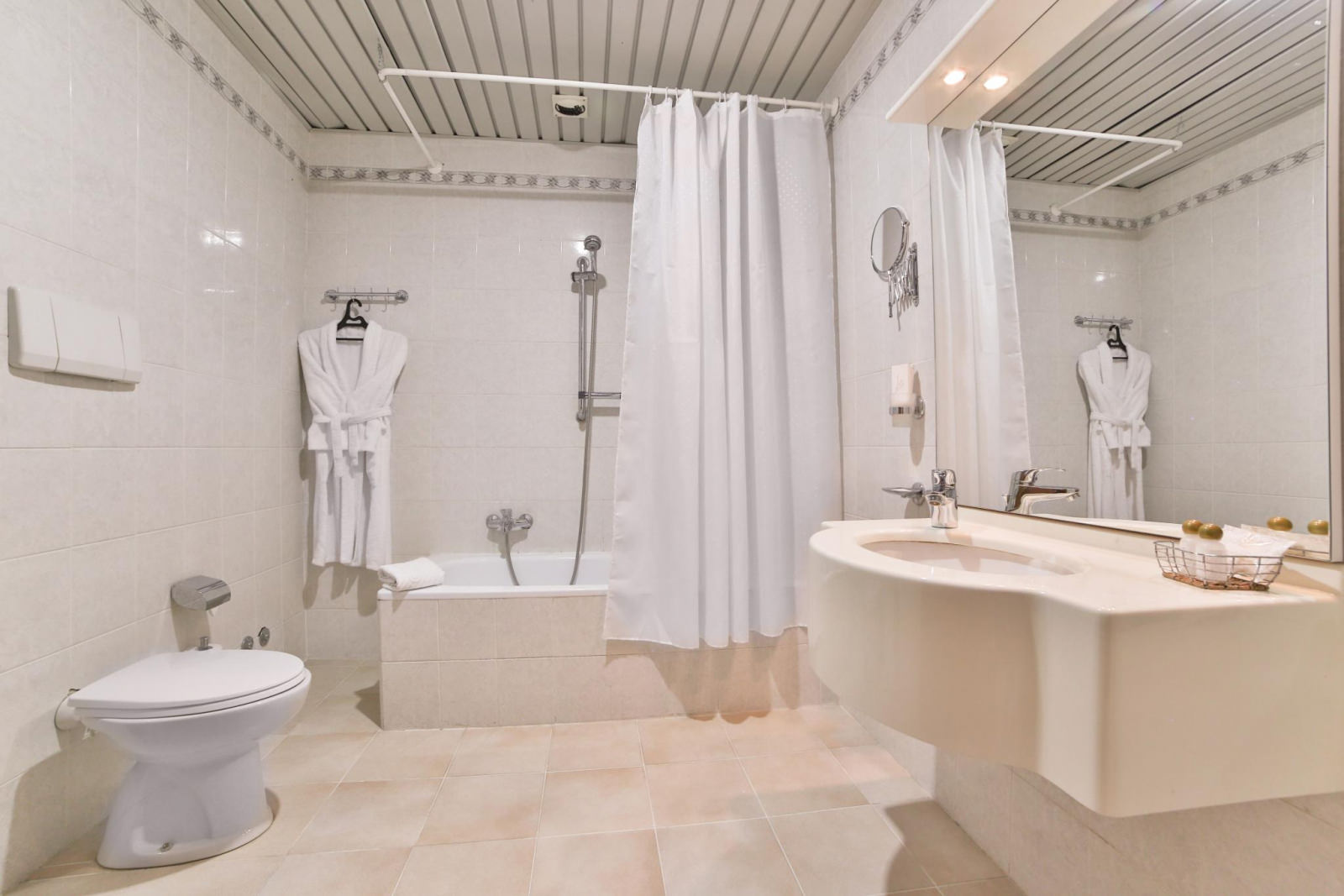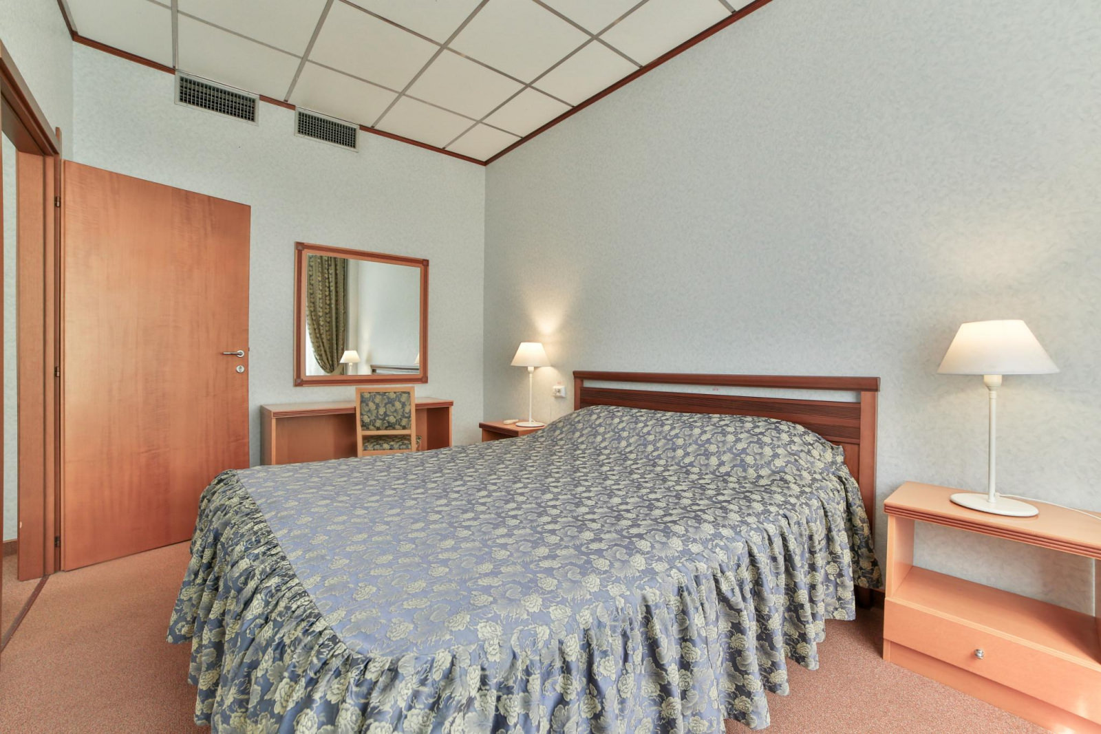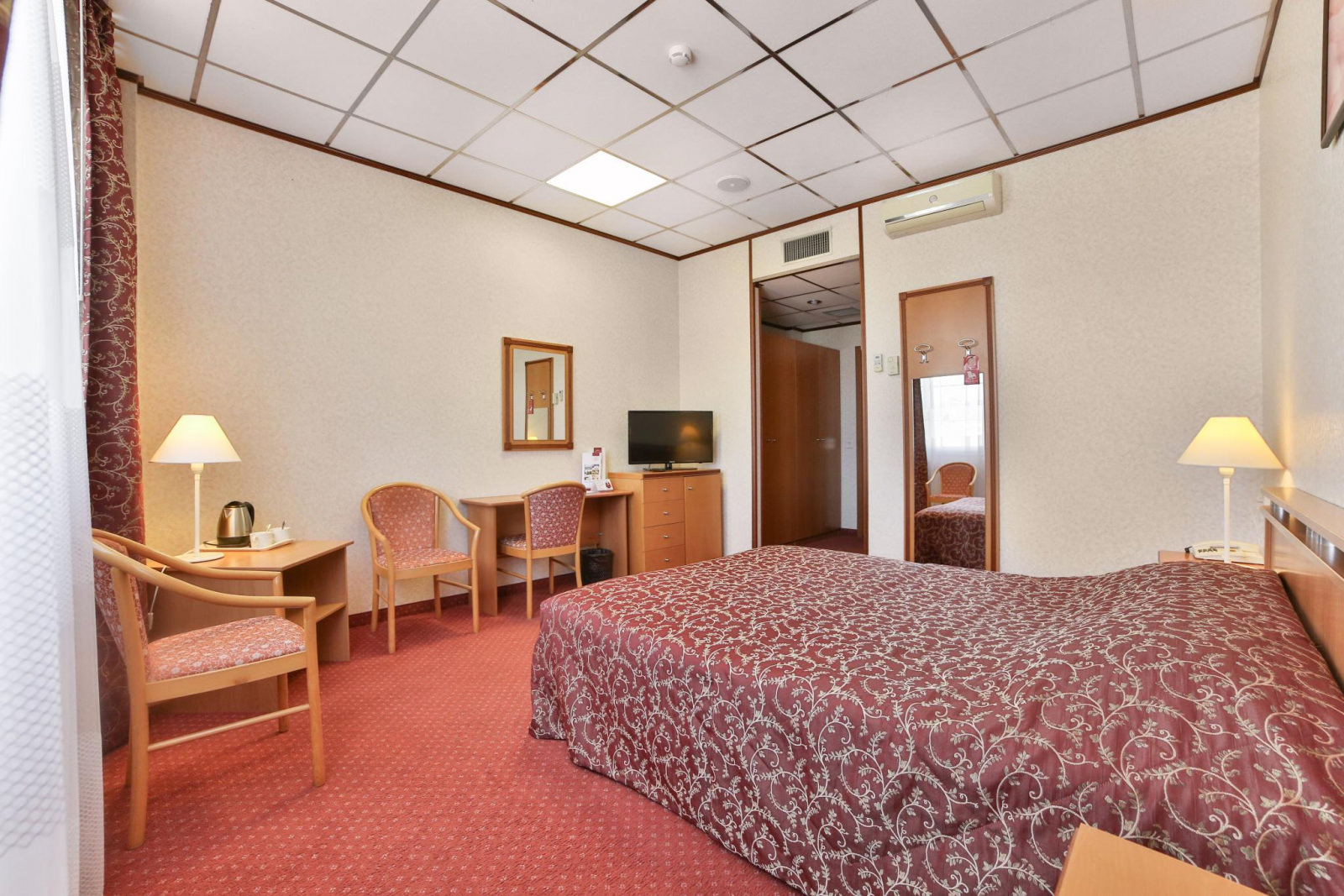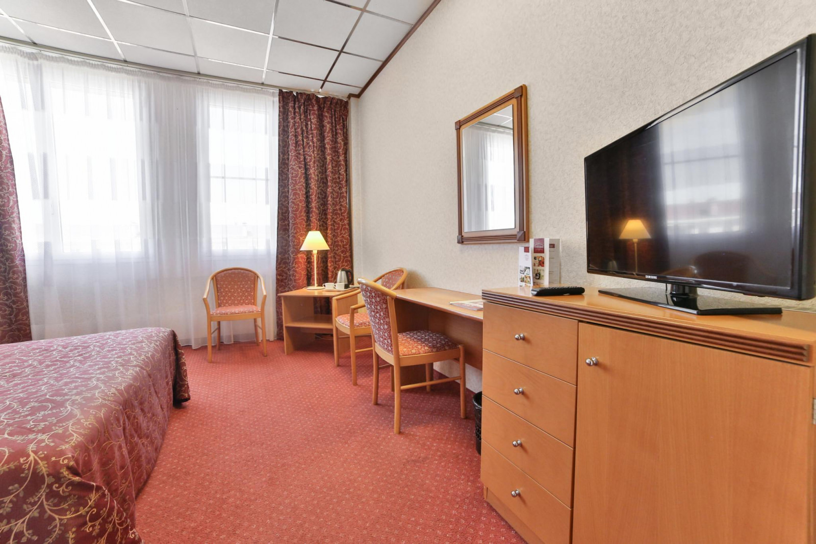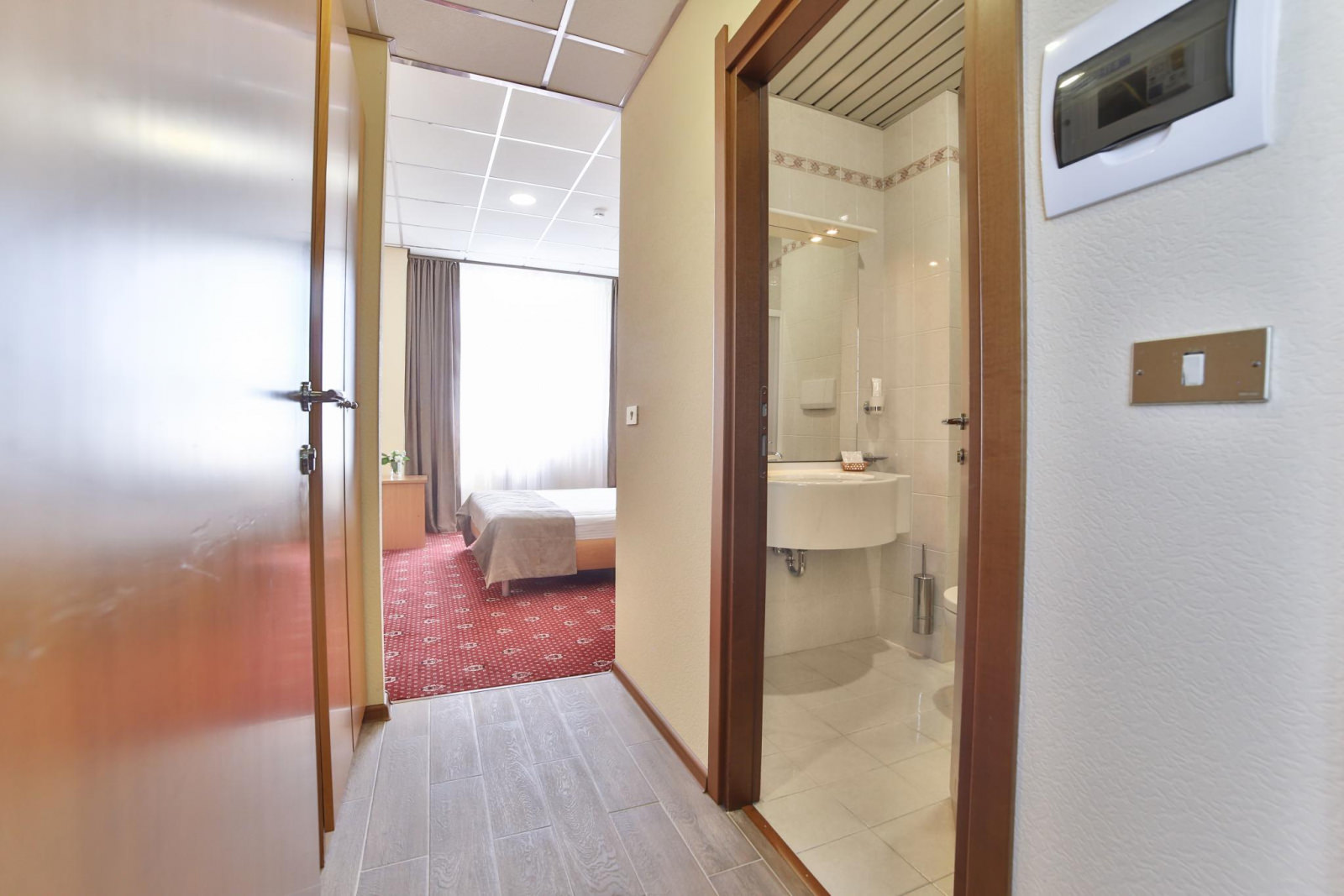 Стандарт с одной комнатой и односпальной кроватью. Номер оснащен кабельным телевидением, мини-холодильником, электрочайником, кондиционером, Wi-Fi доступом в Интернет. В ванной комнате халат, тапочки, фен, одноразовая косметическая продукция(мыло, шампунь, гель для душа, бритвенный и зубной наборы). Номера с душевыми кабинами вместо ванн.