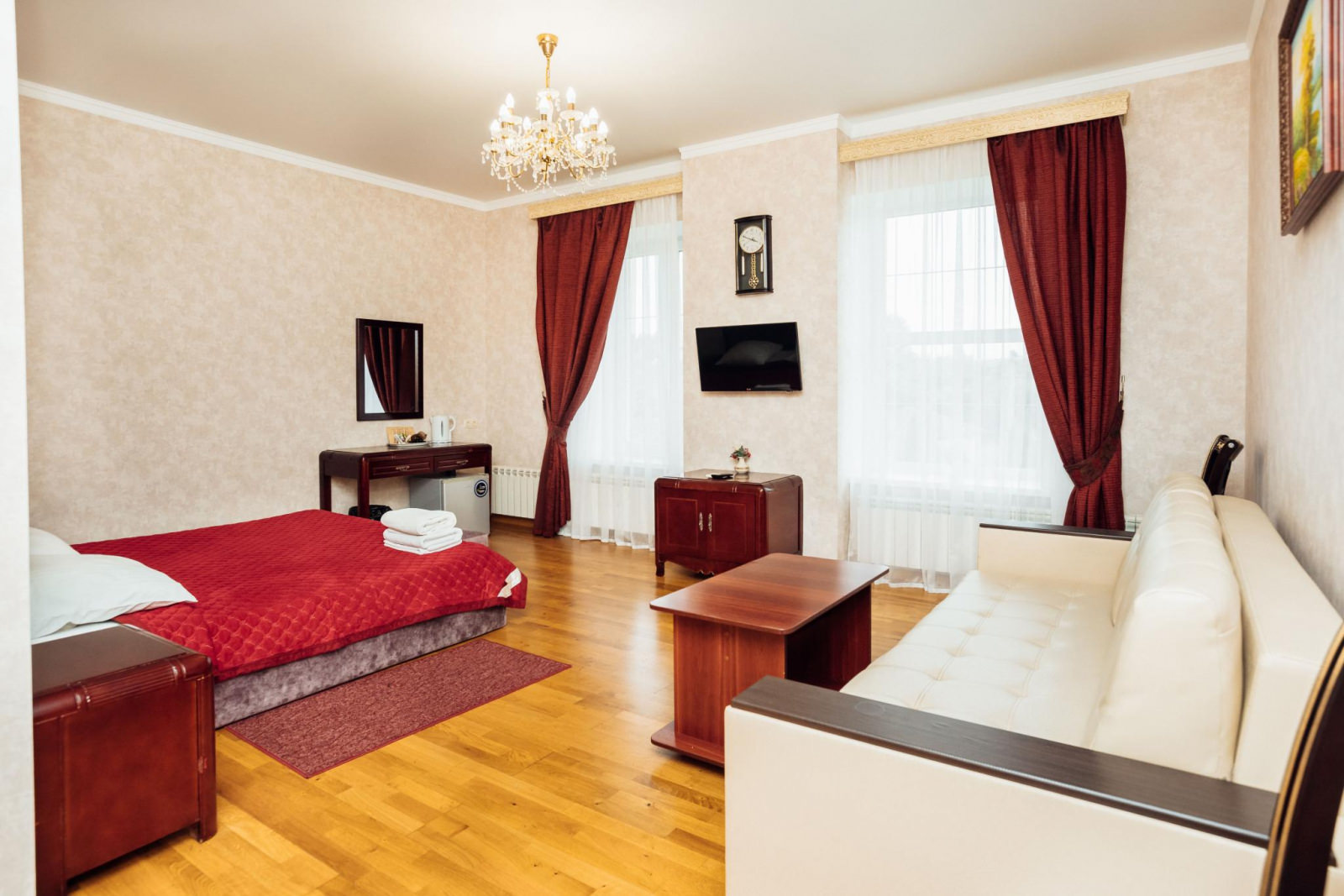 Просторный двухместный номер с двухспальной кроватью — 180×200см, возможно доп. место — диван 140×190см( 600 рублей). В номере имеется все необходимое для комфортного проживания. На этаже функциональная кухня со всем необходимым. Тихое место, частная территория, в шаговой доступности продуктовый магазин «Пятерочка», автобусная остановка. Вежливый и гостеприимный персонал. Бесплатная доставка еды от ресторанов Старого Оскола. Уборка каждый день. Предоставляются отчетные документы. Расчетный час — 12:00.