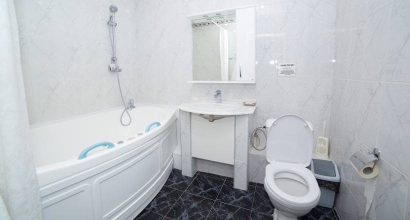 В этот просторном двухкомнатном номере установлена двуспальная кровать (180*200), телевизор, телефон, кондиционер. В гостиной имеется журнальный столик, диван, шкаф для одежды,мини-холодильник. Предусмотрен балкон. В ванной комнате установлена ванная.