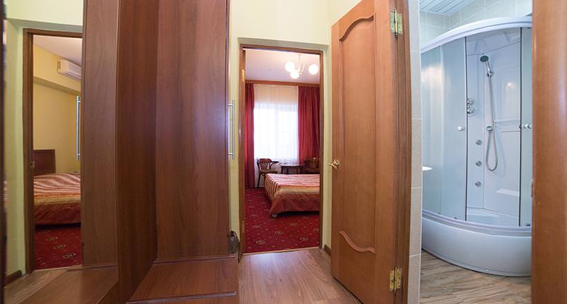 Эти номера специально оформлены нами для тех, кто ценит свободу и желает творческого простора. Королевский простор и роскошный дизайн интерьера помогут Вам испытать неповторимое наслаждение от каждого дня проведенного у нас. В стоимость проживания входит парковка, отдых на открытом бассейне в летнее время и Wi-Fi. номер двухкомнатный В номере: Балкон, Телефон с прямым выходом на междугороднюю связь, Кондиционер, Телевизор, Мини-холодильник, 2-х спальная кровать, Мягкая мебель, Шкаф-купе, Сейф, Ванная комната с ванной или ванной джакузи и туалетными принадлежностями
