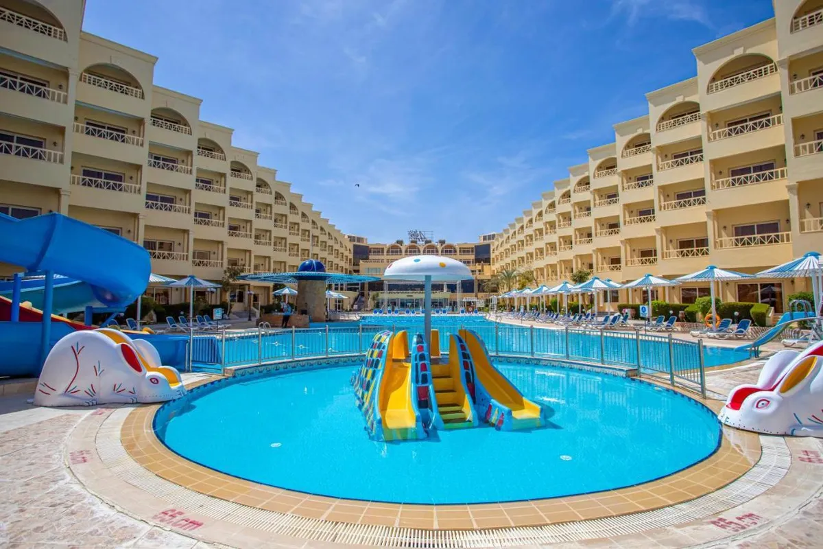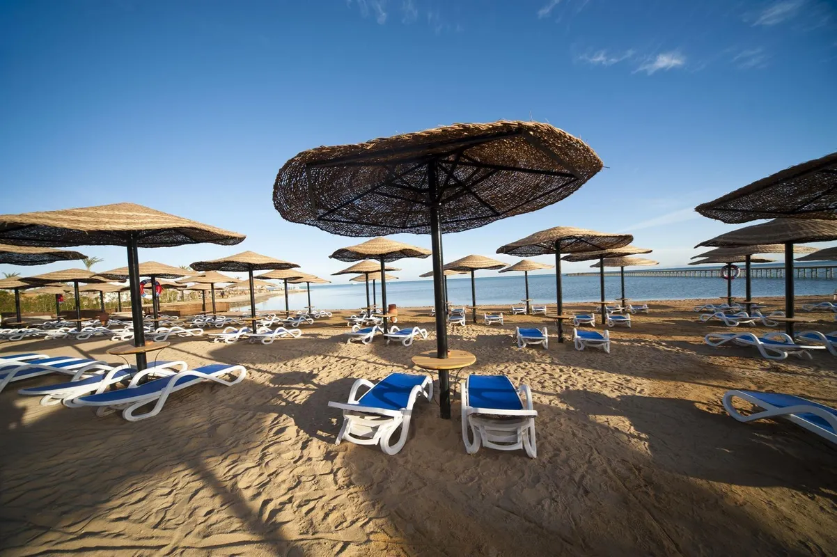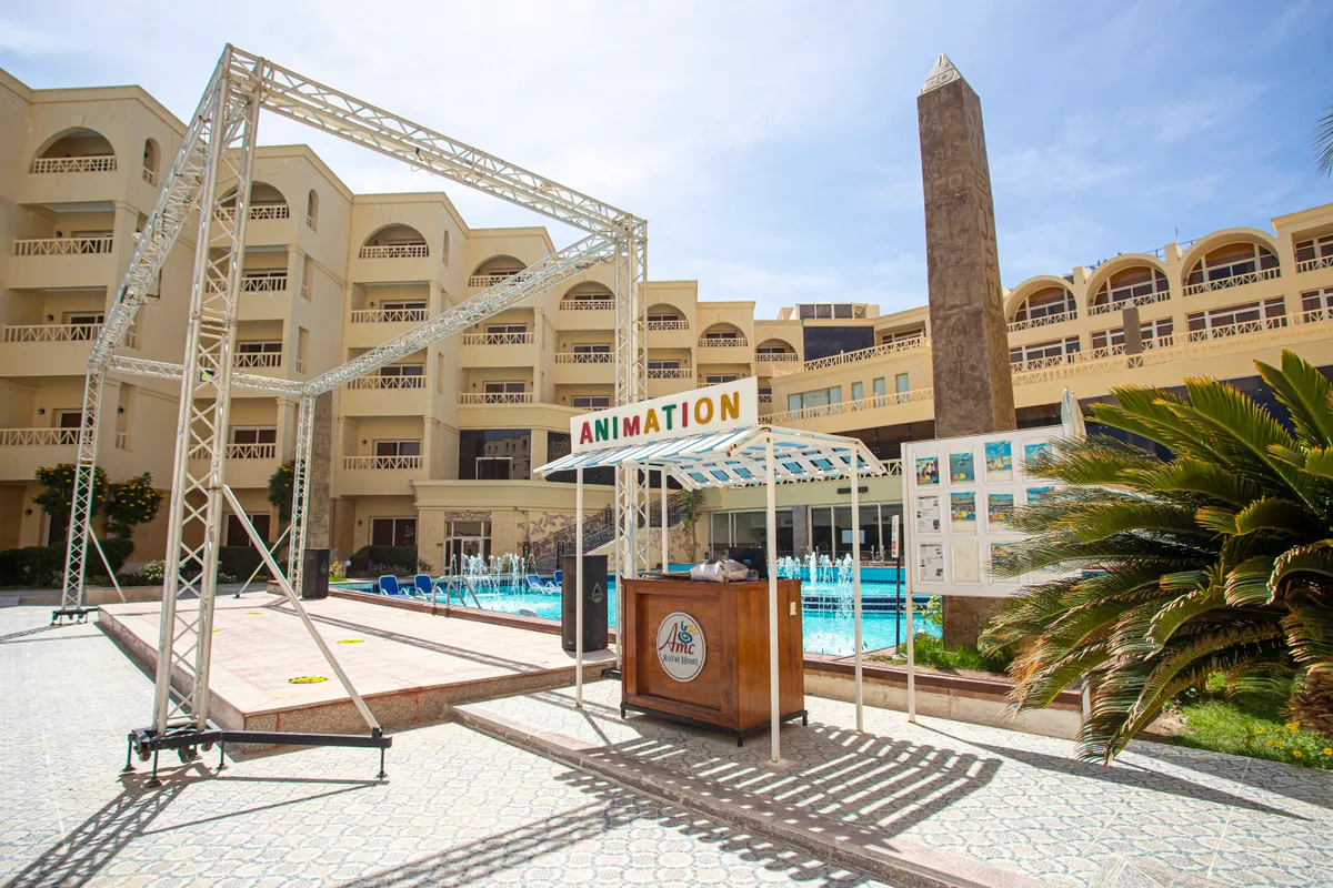 Отель расположен в 26 км от аэропорта Хургады. Его, как правило, выбирают туристы, предпочитающие спокойный пляжный отдых. Номера AMC Royal Hotel находятся в главном 5-этажном здании и двух прилегающих к нему корпусах, образующих комплекс в форме буквы "П" вокруг бассейнов с водными горками и детской зоной для плавания. Гостям предлагают номера самых разных категорий. Все помещения, судя по отзывам, чистые, просторные, с хорошей шумоизоляцией и достаточно свежим ремонтом. Балконы большинства номеров выходят на море, но есть и варианты, с окнами, смотрящими на соседний отель. Питание в AMC Royal Hotel хорошее, разнообразное. Уже побывавшие здесь туристы, в своих отзывах говорят, что готовят здесь вкусно. Особенно хвалят обилие фруктов, а также выпечку и десерты. А вот морепродукты на шведском столе бывают редко. Почти все ужины в главном ресторане проходят в тематическом формате, посвящённые одной из кухонь мира. Кроме основного ресторана, на территории есть платный а ля карт, работающий по предварительной записи, а также 4 бара. Дойти от корпусов отеля до пляжа можно всего за 2 минуты. Пляжная зона очень просторная, шезлонгов на ней достаточно. На берегу чистый песок, вход в воду пологий и на 200 метров море мелкое — во время прилива примерно по пояс, зато хорошо прогревается. Некоторые туристы рекомендуют брать с собой на пляж специальную обувь, поскольку на дно часто попадаются камни и острые ракушки. Есть пирс, который уходит в море на 400 м. За досуг гостей отвечает команда аниматоров. В дневной программе аквааэробика, йога и пляжный волейбол, а вечером в лобби звучит живая музыка: играют на скрипке и фортепиано. Через день проходят шоу в амфитеатре и дискотека. Для юных туристов работает мини-клуб, возле пляжа есть игровая площадка. А сразу после ужина всех ребят приглашают потанцевать на мини-дискотеку. Гости могут бесплатно поиграть в настольный теннис и бильярд, посетить тренажерный зал, сауну в СПА-центре. В отеле есть аптека и небольшие магазинчики, но цены, по мнению туристов, здесь довольно высокие. Более выгодные покупки можно сделать в расположенных за пределами территории AMC Royal Hotel торговых точках. По правую и левую сторону от отеля есть аптеки и магазины подешевле. А если перейти дорогу и немного пройтись, то справа будет небольшой торговый центр, в котором можно купить одежду и сувениры, цены вполне приемлемые.