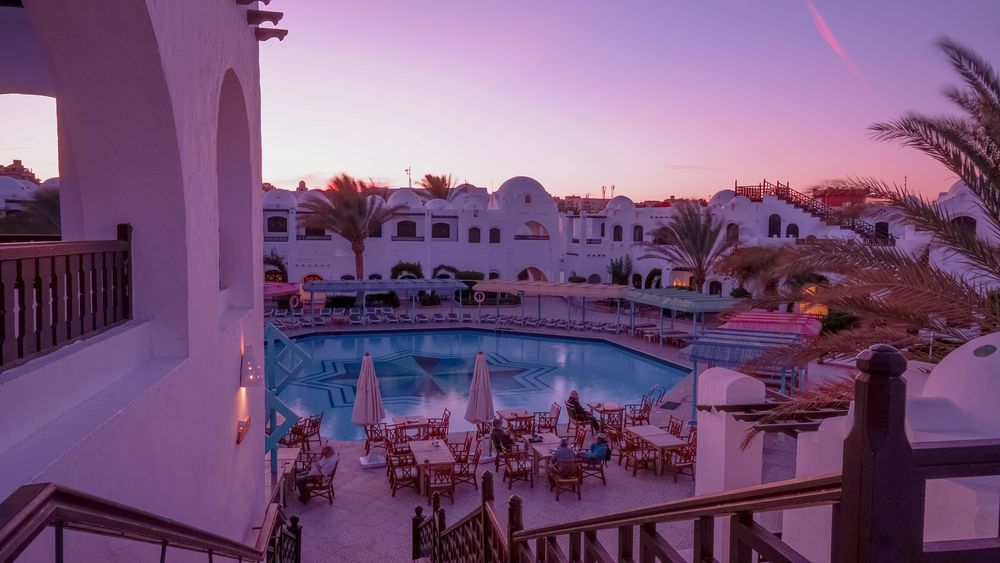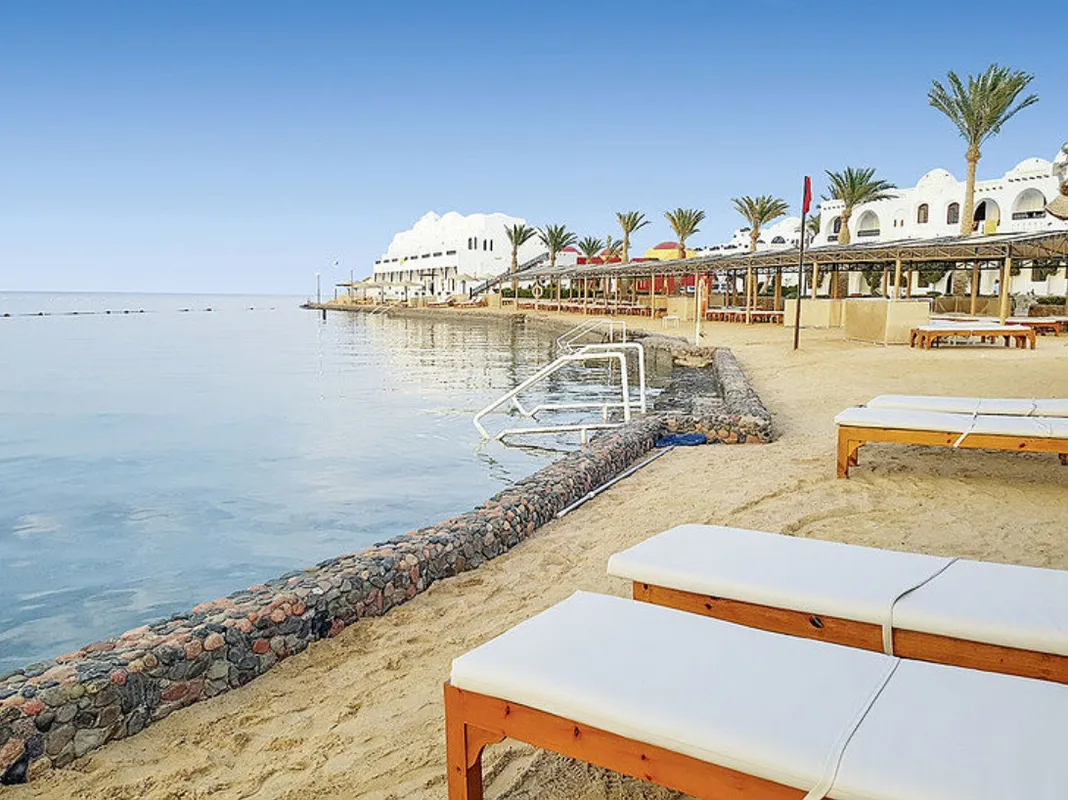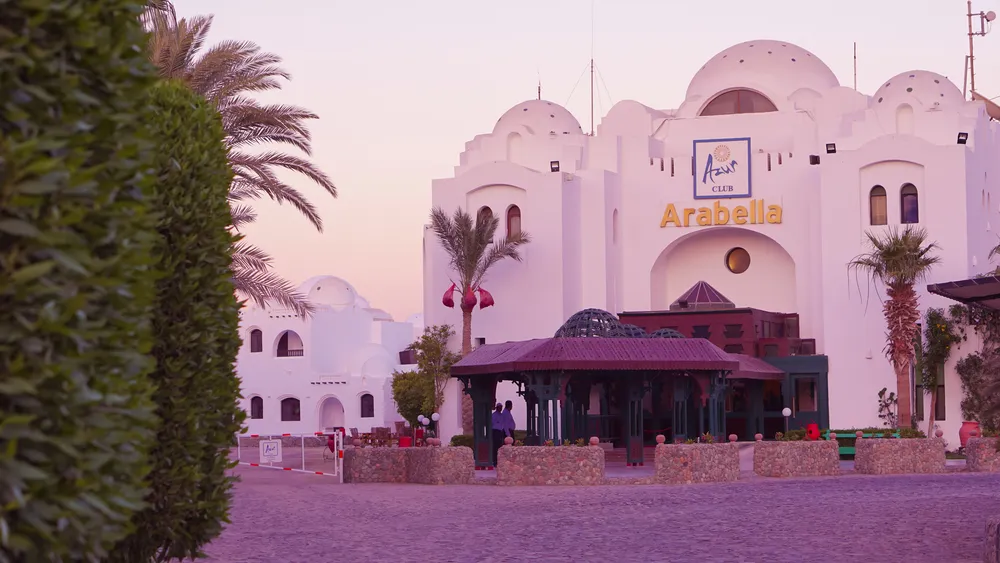 Этот отель расположен в 3 км от центра Хургады и в 11 км от аэропорта. Он, один из немногих на курорте, имеет собственный риф, который идеально подходит для подводного плавания. Рядом с отелем — центр города с магазинами и развлекательными заведениями, есть также магазины и местный базар в непосредственной близости с резортом. Отель состоит из 2-3-этажных корпусов, построенных в арабском стиле. Лифтов в зданиях нет. Номера достаточно просторные и чистые, хотя мебель и отделка в них уже не новая. Всё выглядит просто и даже скромно, но находится в комнатах приятно. Некоторые туристы только жалуются на шумные кондиционеры. На территории есть главный большой бассейн, где проходит вся дневная анимация — аквааэробика, спортивные игры, конкурсы, а также бассейн поменьше, с подогревом и детский бассейн. Гости резорта имеют возможность посещать два песчаных пляжа: пляж, принадлежащий Arabella Azur, где входить в море нужно по ступенькам, и пляж соседнего отеля, где спускаться в воду можно с пирса или входить с берега в небольшой лагуне с песчаным дном. Оба пляжа находятся в шаговой доступности, но они небольшие и шезлонгов на них мало, поэтому когда отель полностью заселён, свободных мест на берегу хватает не всем. На территории резорта в распоряжении отдыхающих 2 ресторана: один работает формате шведского стола, а второй — а ля карт — открыт только во время ужина. Выбор блюд на столах небольшой, но всё очень вкусное. По субботам в отеле проходит день Египетской кухни, ассортимент еды становится ещё меньше, но зато можно попробовать местные аутентичные блюда. В отеле работают несколько баров, среди которых бар на пляже, снек-бар, где можно перекусить между основными трапезами и бар в лобби, работающий до 4 часов утра. Вечерняя анимация проходит в амфитеатре: шоу, викторины, конкурсы и комедийные представления. В отеле есть теннисный корт, площадка для сквоша, футбольное поле, волейбольная площадка, бильярд, настольный теннис и дартс. Детский клуб работает 2 часа до обеда и 2 часа после, а вечером для юных гостей проводят мини-диско. Также на территории есть хорошо оборудованная детская игровая площадка. В лобби располагается библиотека, красивый внутренний дворик, магазины с сувенирами и другими товарами.