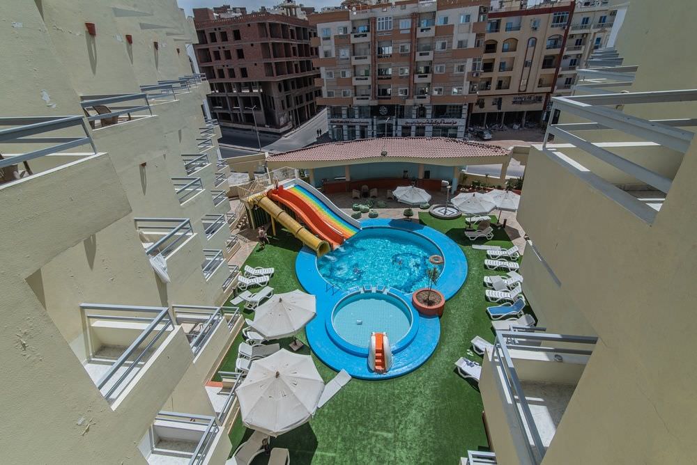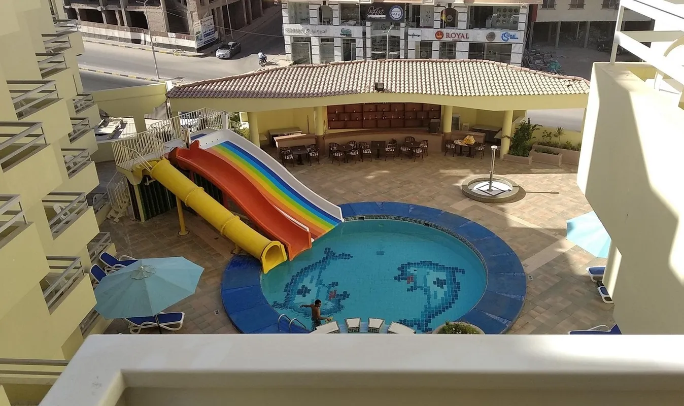 Отель расположен в центре города Хургада. Наши туристы считают, что это место подойдет непритязательным путешественникам и станет хорошим вариантом для молодежного активного отдыха. Отель занимает небольшую территорию площадью 10 000 м² и состоит из одного 6-этажного здания с лифтами. В жилом фонде, в основном, стандартные и семейные номера, но есть также люксы и улучшенные номера с видом на море. Все помещения довольно просторные и светлые. Но мебель и оснащение в номерах уже старые, хотя всё работает исправно. Собственный песчано-галечный пляж отеля находится в 300 метрах от его здания, через дорогу. Гости идут к берегу пешком или едут на шаттле, который несколько раз в день курсирует от отеля на пляж и обратно. Вход в море здесь песчаный, пологий. Шезлонги довольно старые, но свободные всегда найдутся. Места для отдыха также оборудованы и на пирсе, с которого можно спуститься в море по лестнице. На берегу есть туалеты и душевая. Пляжные полотенца гостям выдают в отеле бесплатно. Недалеко от берега под водой много интересного — причудливые кораллы, красивые рыбки, скаты, мурены — отдыхающие с удовольствием плавают с маской. На территории отеля для гостей оборудовано 2 небольших открытых бассейна: один для взрослых, с 3 водными горками, а другой — детский, небольшой глубины. Концепцию «Все включено» поддерживает главный ресторан отеля — Dexon. В нём гостей ждет шведский стол с блюдами интернациональной кухни. Итальянский и египетский а ля карт рестораны приглашают отдыхающих на ужин за отдельную плату. Бесплатно их можно посетить только 1 раз за всё время отдыха. В любом случае, необходимо предварительно бронировать столик на ресепшн. Также в лобби отеля весь день до позднего вечера работает бар. Ещё есть бар на пляже и бар у бассейна, в которых подают только безалкогольные напитки. Для детей на территории отеля оборудована игровая площадка, защищенная навесом от солнца. Дневная анимация в отеле ограничивается аэробикой в бассейне, волейбольными матчами на пляже и веселыми играми для детей. А вечером всех отдыхающих приглашают на дискотеку. За отдельную плату туристы могут посещать тренажерный зал, играть в бильярд, попарится в турецкой бане и сауне, понежится в джакузи, а также воспользоваться услугами массажиста и специалистов салона красоты. В отеле можно взять в аренду снаряжение для снорклинга и дайвинга. В лобби и в ресторане отдыхающие могут пользоваться бесплатным Wi-Fi. Скорости передачи данных вполне достаточно для просмотра соц. сетей и общения в мессенджерах. Рядом с отелем в шаговой доступности находится основная инфраструктура города Хургада: магазины, кафе, дискотеки и рестораны.