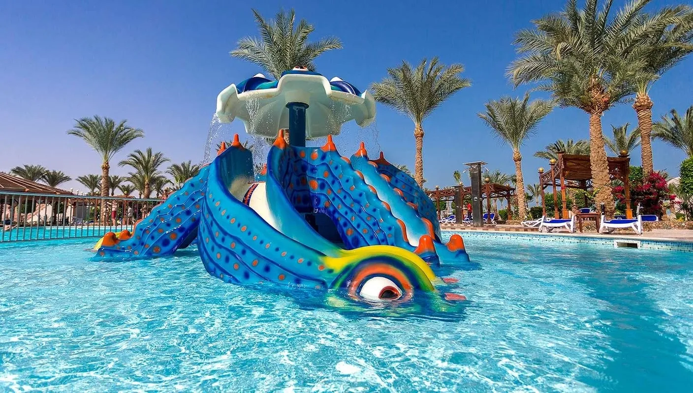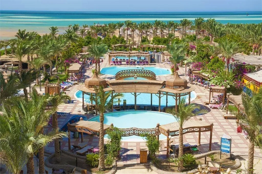 Отель располагается на первой береговой линии, недалеко от курорта Эль-Гуна, в 26 км от аэропорта Хургада. У него общая территория с отелем Le Jardin, принадлежащим той же сети, поэтому гости курорта могут пользоваться всей его инфраструктурой, кроме ресторанов и баров. Владения у отеля просторные, ухоженные и зеленые: высокие пальмы, зеленые кустарники, красивые цветочные клумбы. Жилой фонд состоит из 493 номеров, расположенных в основном 6-этажном здании, нескольких бунгало и корпусах, стоящих через дорогу. Большинство номеров могут похвастаться красивыми видами из окон на море. Комнаты светлые и просторные, но мебель в них уже довольно старая, а вот матрасы на кроватях новые и очень комфортные. Принадлежащий отелю широкий пляж протяженностью около 200 м, всегда чистый, а свободных шезлонгов на нём достаточно в любое время дня. Спуск в море с берега неудобный, на дне лежат большие камни, поэтому желательно использовать специальную обувь или входить в воду с понтона. Морских обитателей под водой немного, можно иногда встретить крабов, морских звезд и маленьких рыбок. На территории есть несколько бассейнов детских и взрослых, один из которых с подогревом. Кроме того, в отеле функционирует свой аквапарк. Завтраки, обеды и ужины сервируются в формате шведского стола в основном ресторане с открытой террасой. Выбор блюд довольно большой, но меню однообразное. Также в отеле работают еще 2 ресторана a ля карт, в которых можно, предварительно забронировав столик, отведать блюда азиатской и средиземноморской кухни. Досуг отдыхающих обеспечивает большая команда аниматоров, которые устраивают развлекательные программы, проводят аквааэробику, конкурсы, дискотеки, тематические представления и пенные вечеринки. Также к услугам гостей СПА-центр и поле для гольфа. Бесплатный доступ к Wi-Fi предоставляется только в лобби отеля, но работает он нестабильно. В пешей доступности от курортного комплекса находится центральная улица Хургады — Шератон.