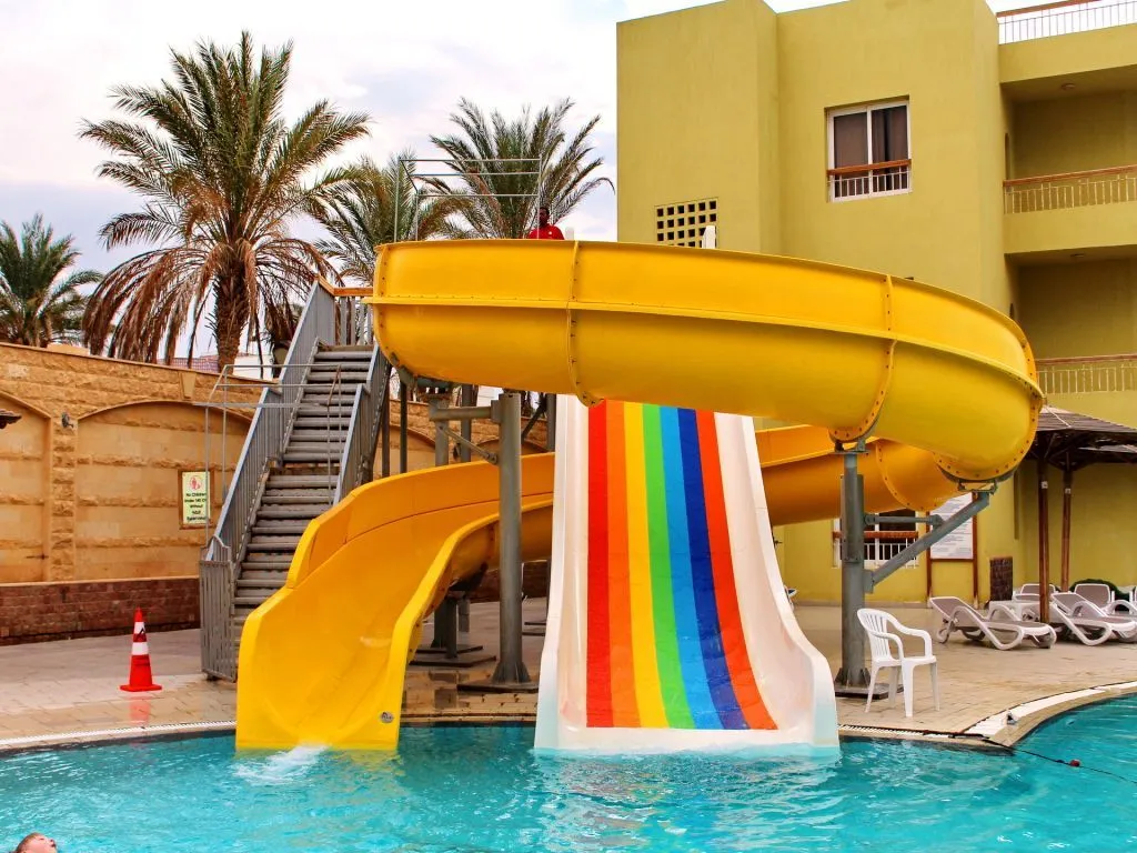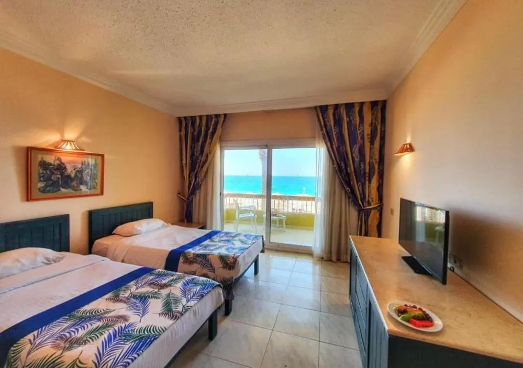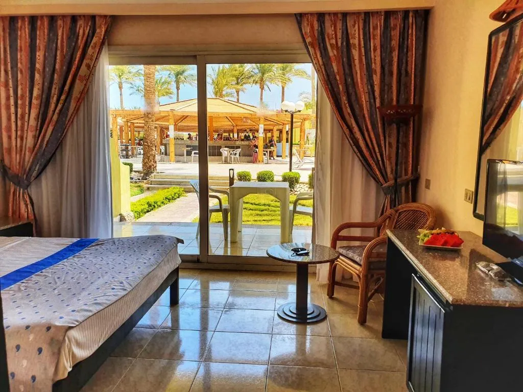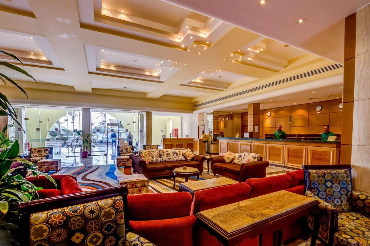 Palm Beach Resort 4* расположен в пригороде Хургады, в 20 км от аэропорта и в 5 км от Старого города. Отель существует уже давно и считается у туристов не очень дорогим, но при этом достаточно качественным вариантом для семейного отдыха. Главное здание и пять корпусов Annex стоят на компактной, ухоженной, зелёной территории. Персонал отеля очень дружелюбный, приветливый и заботится о комфорте гостей и чистоте вокруг. В жилом фонде представлены небольшие стандартные, просторные семейные и двухместные номера эконом-класса. Есть варианты с балконами и без. Отделка в комнатах сделана давно, мебель уже не новая, но всё выглядит аккуратно и работает, как правило, без перебоев. Персонал старается поддерживать чистоту и хорошее состояние номеров. Собственный песчаный пляж отеля протяжённостью 180 м находится в 3 минутах ходьбы от главного здания. Берег здесь чистый, ухоженный, а вход в воду пологий, комфортный. Есть бетонный пирс длиной 90 м, с которого можно спуститься прямо к рифу и поплавать с маской. Свободные шезлонги всегда есть в наличии, места заранее почти никто не занимает. На территории комплекса работают два ресторана и четыре бара. Питание в отеле большинству туристов нравится — в своих отзывах они говорят, что меню вкусное и разнообразное. Правда, в зале часто бывают очереди, но свободные столики есть всегда. К услугам гостей три бассейна: большой, поменьше с 2-мя водными горками и джакузи, а также неглубокая детская чаша. В главном здании работают СПА-центр, несколько магазинов и аптека. Аниматоры предлагают отдыхающим утреннюю зарядку, аэробику в бассейне, тренировки по йоге, дартс и уроки танца живота. В Palm Beach Resort есть два теннисных корта, бильярд, тренажерный зал, а также детский клуб, расположенный рядом с пляжем и игровой площадкой для маленьких туристов, Вечером гостей ждёт шоу-программа и дискотека. В отеле работает школа виндсерфинга, есть курсы подводного плавания и верховой езды, прокат спортивного инвентаря и сервис аренды автомобилей.