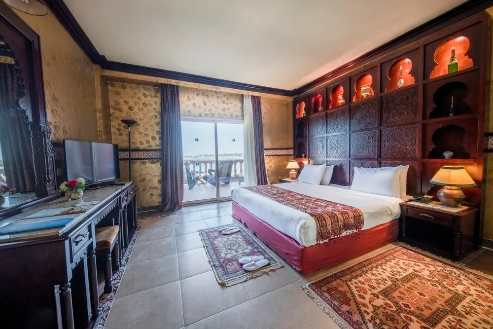 Резорт находится в 14 км от аэропорта Хургады и является частью большого отельного комплекса Sunrise, в котором у трёх отелей общая территория. Поэтому гости могут пользоваться инфраструктурой, пляжами и ресторанами соседних отелей. У Mamlouk Palace просторная зелёная территория, где есть разные спортивные площадки, два бассейна, один из которых подогревается, аквапарк с 13 водными горками, а также много зон для расслабляющего отдыха с пуфиками и гамаками на зеленых лужайках, качелями и беседками в тенистом саду. На пляже комплекса предусмотрена зона 16+. Так что, отель одинаково подходит и семейным туристам и тем, кто любит спокойный отдых. Принадлежащий комплексу пляж располагается в 150 метрах от корпусов отеля. Вход в воду здесь комфортный, а приливы-отливы не ярко выражены. Есть пирс, рядом с которым находится небольшой, но живописный коралловый риф. Шезлонгов на берегу очень много и расположены они довольно близко друг к другу, но всё равно, почти все места заняты уже с раннего утра. В баре на берегу можно не только взять напитки, но и полноценно пообедать, поесть фрукты и мороженое. В номерах просторно и чисто, хорошая звукоизоляция, но мебель и ремонт, по мнению туристов, уже требуют обновления. А вот телевизор в номере вполне современный и сантехника хорошая. Есть чайник, бесплатный сейф, набор косметики в ванной, но отсутствуют халаты и тапочки, хотя отель и пятизвездочный. Wi-Fi бесплатный на всей территории отеля, отлично работает и в номерах. Уборка номера производится каждый день, а смена полотенец — по требованию отдыхающих. В главном ресторане — шведский стол. Питание разнообразное, вкусное. Всегда есть хороший выбор мяса, рыба и морепродукты, бесплатный свежевыжатый сок по утрам, вкусная выпечка и десерты. Вот только для детей выбор еды довольно скудный и фруктов на шведском столе очень мало. Кроме главного ресторана отеля, гости Mamlouk Palace могут посещать рестораны соседних резортов, а также записаться на ужин в один из 9-ти бесплатных а ля карт ресторанов. Анимация в отеле довольно активная. Утром и днём йога и зарядка, уроки танцев, аквааэробика, волейбол, дартс. По вечерам — живая музыка и шоу. Для юных туристов работает мини-клуб, где проводятся игры и мастер-классы, есть детские бассейны, игровые площадки, мини-диско по вечерам. На территории отеля есть СПА-центр, тренажёрный зал, площадка для мини-гольфа, баскетбола, стрельбы из лука, футбольное поле, теннисные корты, бильярд. Рядом с отелем, в радиусе 500 метров, расположены: большой торговый центр «Сензо Молл», аптека, сетевые кафе, музей скульптур под открытым небом.