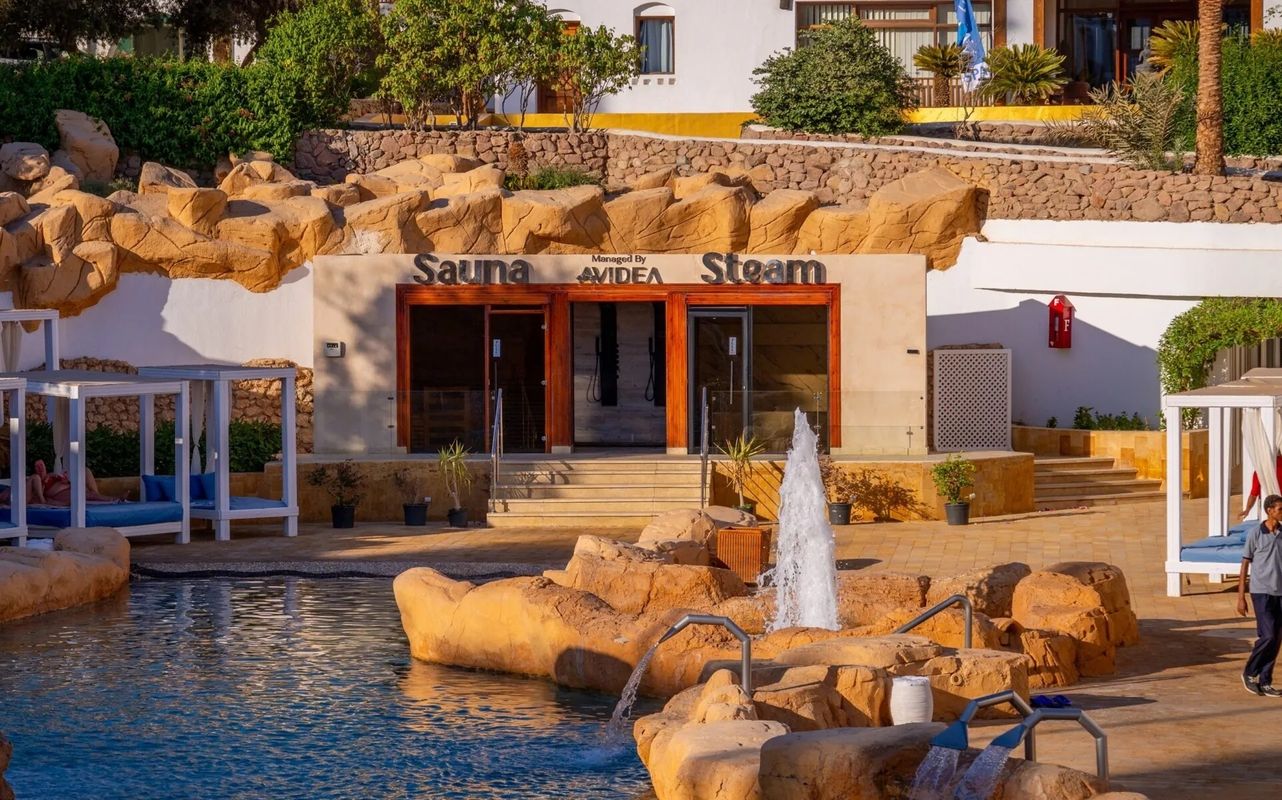 Этот отель — один из самых больших в Египте. Он расположен в 11 км от аэропорта Шарм Эль Шейх и привлекает туристов обширной инфраструктурой, богатым коралловым рифом и отличным пляжем. Domina Coral Bay — курортный комплекс, состоящий из нескольких отелей, находящихся на одной общей территории площадью около 1 000 000 м². Это своего рода город отелей, по которому для удобства туристов курсируют микроавтобусы. Здесь даже есть улица с магазинами и ресторанами, эко-ферма и солёное озеро. На территории комплекса располагается 6 открытых бассейнов, некоторые из которых подогреваются, в зависимости от погодных условий. Aquamarine Pool находится в центральной части «города отелей», недалеко от моря и входа на главную часть пляжа, а также рядом с главным бассейном. В его здании представлены только стандартные номера. Есть варианты с видом на море и на бассейн. Комнаты довольно просторные, светлые, но отделка и интерьер в них уже требуют обновления. Гости жалуются на плохо работающую сантехнику, но отмечают хорошее качество уборки, которая, кстати, проводится в номерах ежедневно. Песчаный пляж длиной почти 2 километра находится в 300 метрах от здания отеля. Вход в воду здесь осложняют кораллы, поэтому отдыхающие используют специальную обувь или спускаются в море с большого понтона, оборудованного несколькими лестницами. Прямо на понтоне располагаются 2 бассейна с морской водой и шезлонги. У понтона находится живой коралловый риф — настоящий рай для любителей поплавать с маской или аквалангом. Пляжная зона — широкая и шезлонгов на ней много, так что заранее места гости не занимают. По краям пляжа находятся бары, где в середине дня предлагают перекусить или пообедать пиццей, итальянской пастой, овощными блюдами и фруктами. В отельном комплексе к услугам гостей сразу 3 основных ресторана. Питание, по мнению большинства туристов, здесь не соответствует уровню пятизвёздного курорта. Выбор блюд на шведском столе каждого из ресторанов довольно большой, но меню везде примерно одинаковое и повторяется изо дня в день. Однако, каждый ужин — тематический и посвящён определённой кухне. Свободные столики во всех ресторанах есть всегда, а очередей никогда не бывает. Баров на территории тоже много, но бесплатно пользоваться ими туристы могут только в соответствии с цветом своих браслетов. Есть в отеле и несколько ресторанов а ля карт, но меню в них платное и необходима предварительная резервация. Анимация в Aquamarine Pool активная, но ненавязчивая. В первой половине дня гостей ждут на занятиях по йоге и аэробике у бассейна, аниматоры организуют спортивные игры и разнообразные конкурсы. На пляже днём играют в волейбол. Вечером, после ужина, отдыхающих ждут в амфитеатре, где проходят различные шоу. Потом начинается дискотека на главной площади «города отелей». Для юных туристов тоже есть развлекательные и спортивные мероприятия, мини-дискотека, неглубокий подогреваемый в прохладную погоду бассейн и детский клуб.