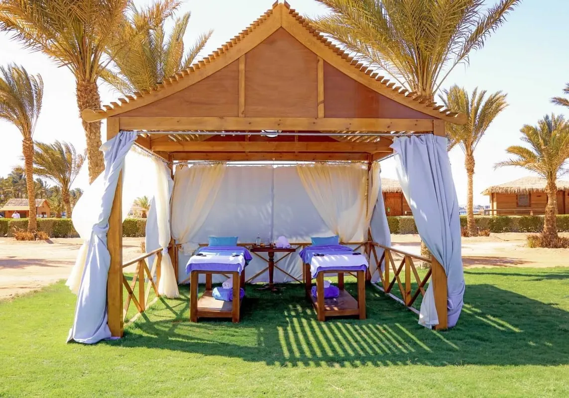 Этот отель расположен на юге курорта Макади Бей, в 35 км от аэропорта города Хургада. Уже побывавшие здесь туристы считают его хорошим и достаточно бюджетным вариантом для семейного отдыха. На ухоженной, зелёной территории отеля площадью 72 000 м² стоят 3 двух- и-трёхэтажных корпуса и девять шале, расположенных рядом с берегом моря. Номера небольшие, с уже требующей обновления отделкой и старенькой, но добротной мебелью. Убирают в комнатах каждый день и чисто. Но гости часто жалуются на поломки сантехники, плохо регулируемый кондиционер. На территории отеля есть 4 открытых бассейна, один из них подогревается в прохладную погоду. В отзывах некоторых туристов есть рекомендация тем, кто только собирается отдохнуть в Labranda Royal Makadi: выбирать варианты размещения подальше от основного бассейна, где проходит большинство анимационных мероприятий. Песчаный пляж с комфортным входом в море располагается в лагуне, прямо перед территорией отеля. У берега здесь глубина небольшая и вода быстро прогревается. Риф в лагуне довольно живописный, но располагается далеко от берега, поэтому туристы, которые любят плавать с маской ходят на пирс соседнего отеля и спускаются в воду оттуда. Питанию отдыхающих уделяют особое внимание. Здесь можно попробовать самые разные кухни мира. К услугам гостей основной ресторан и 11 а ля карт ресторанов, которые туристы могут посещать бесплатно, в зависимости от того насколько дней у них забронирован номер. Часто бывают тематические вечера, посвящённые разным странам. Еда везде вкусная и приготовлена из свежих продуктов, а шведский стол довольно разнообразен. Баров на территории тоже много: круглосуточный в лобби, диско-бар, бар на террасе с видом на море, бары Rock и Tropicana у бассейнов, бар Sun Rise и лаундж-бар с услугами дворецкого на пляже. Также у берега моря с 11 до 16 часов в бедуинской палатке для постояльцев пекут восточные пироги. В Labranda Royal Makadi есть небольшие магазины, СПА-салон с сауной и парной, интернет-кафе, теннисный корт, сервис проката снаряжения для водных видов спорта, тренажерный зал и бильярд. Туристы могут вместе с аниматорами позаниматься аквааэробикой и потанцевать на площадке у пляжа, поиграть в настольный теннис, дартс, сквош, водное поло и волейбол. Вечером гостей ждёт шоу-программа и дискотека. Для юных постояльцев есть небольшой открытый бассейн и секция в главном бассейне, игровая площадка. В гости ребят ждёт мини-клуб: Родители малышей могут воспользоваться платными услугами няни. По расписанию с территории отеля до центра города ходит автобус, на котором гости курорта могу отправиться на шоппинг и прогулки. Места в автобусе платные и записываться на трансфер нужно заранее на ресепшн.