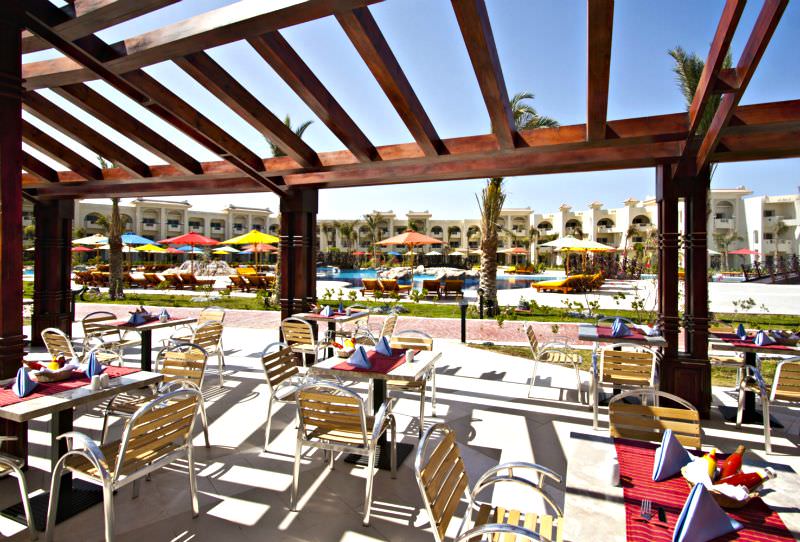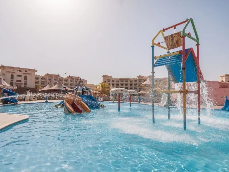 Отель расположен в южной части курорта Макади Бей, в 42 км от центра г. Хургада и в 38 км от аэропорта. Он является частью крупного курортного комплекса «Макади Бей Фан Сити», занимающего площадь 150 000 м². У наших туристов отель считается хорошим вариантом для активного семейного отдыха. Здесь есть аквапарк на 26 горок и даже луна-парк. Гостям предлагают просторные номера, хорошее питание и сервис. Отель состоит из двух основных зданий и трёх дополнительных корпусов. Самые дальние от моря номера находятся в здании Garden, но зато они ближе всего к аквапарку. Отделка и интерьер в комнатах не самые свежие, но просторно, чисто, светло, всё в рабочем состоянии и уборка проводится довольно тщательная. Многих туристов не устраивает звукоизоляция —шум из коридора и звуки анимации, слышно почти во всех номерах. Песчано-каменистый пляж находится в 800 метрах, через дорогу. Чтобы добраться до моря, гостям нужно пройти через территорию соседнего отеля или воспользоваться шаттлом, который ходит по расписанию. Но большинство постояльцев предпочитают первый вариант: территория соседа зеленая, ухоженная, красивая и прогуляться по ней одно удовольствие. Кроме того, по дороге можно зайти в магазины при отеле, купить сувениры, продукты и пляжные аксессуары. Пляж у отеля — вполне типичный для Макади Бей, с коралловым дном, без специальной обуви здесь не обойтись. У берега довольно мелко, а через несколько метров уже начинается глубина и риф, у которого можно понырять с маской и понаблюдать за жизнью обитателей моря. Для спуска в воду также есть пирс с лестницами. На пляже есть небольшая, расчищенная от кораллов лагуна, где удобно купаться детям. На территории комплекса в распоряжении туристов множество бассейнов. Среди них есть детский, бассейн с искусственной волной и аттракционом «безумная река», бассейн с аквапарком и бассейны с морской водой. Большинство чаш оборудованы подогревом. Питание в отеле вкусное и разнообразное. Гости, как правило, остаются довольны ассортиментом блюд на шведском столе в главном ресторане. К тому же, у отдыхающих есть возможность дополнительно разнообразить меню, посещая а ля карты, которых в отеле 5. Есть также бары: у бассейна, в лобби, на пляже. Работает кафе, английский паб и фуд-корт в аквапарке. Большинство дополнительных услуг в отеле — платные: автобус до центра Хургады, услуги няни, СПА-центр с сауной и услугами массажиста, салон красоты, бильярд, школа дайвинга, игровые автоматы и 6D-кинотеатр, аттракционы в луна-парке. Бесплатно гости могут пользоваться теннисными кортами, тренажерным залом. Для детей здесь работает мини-клуб, есть игровая комната и площадка с горками и качелями.